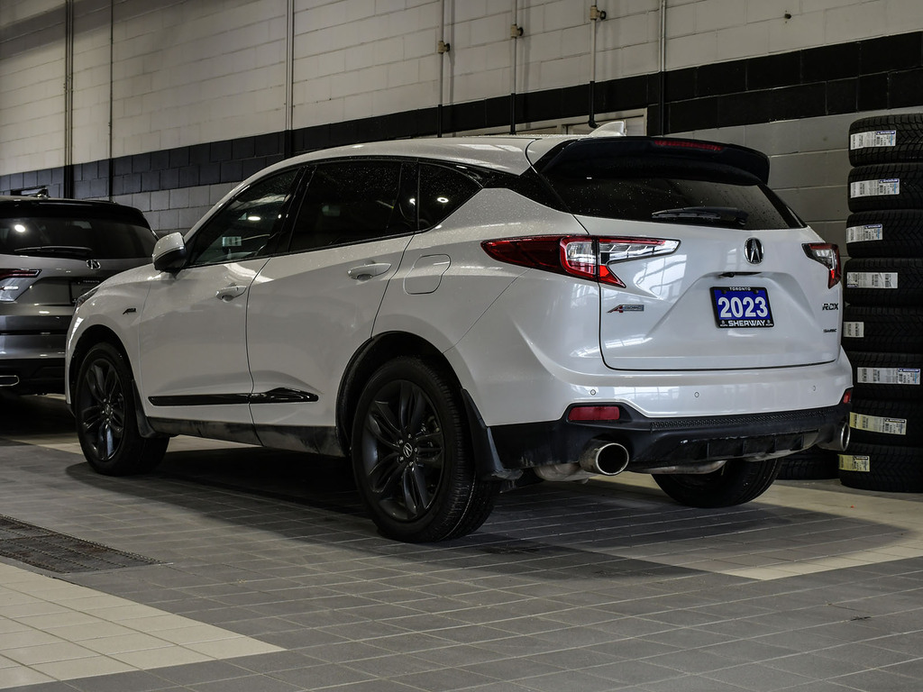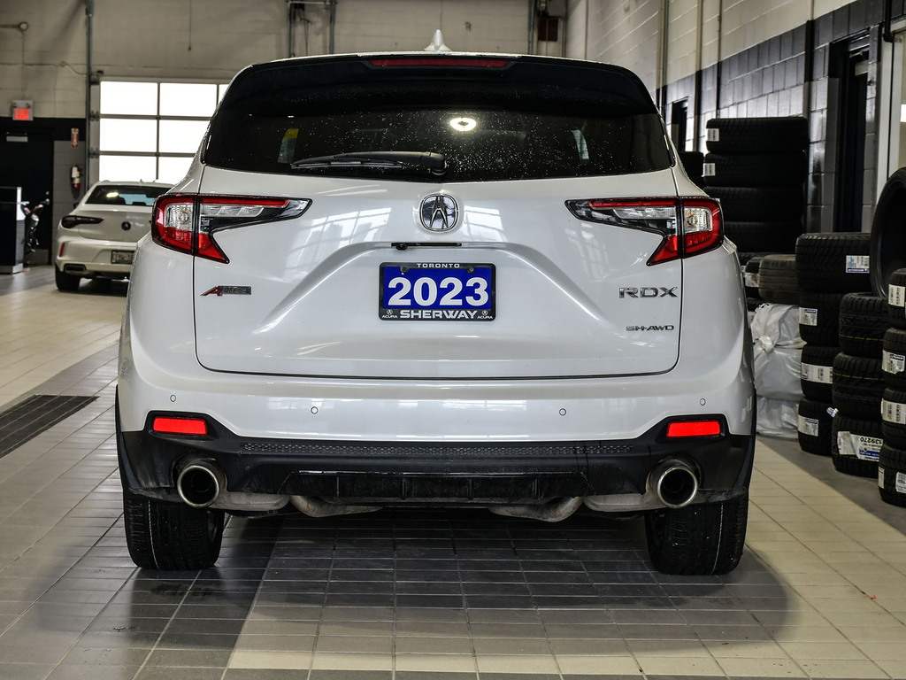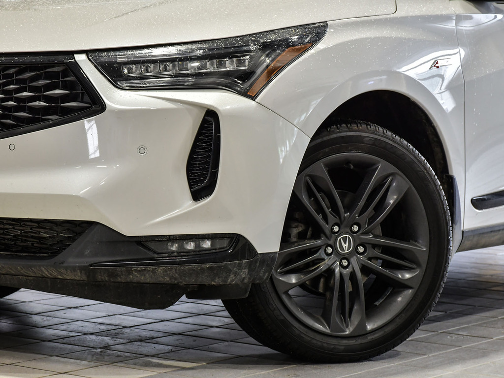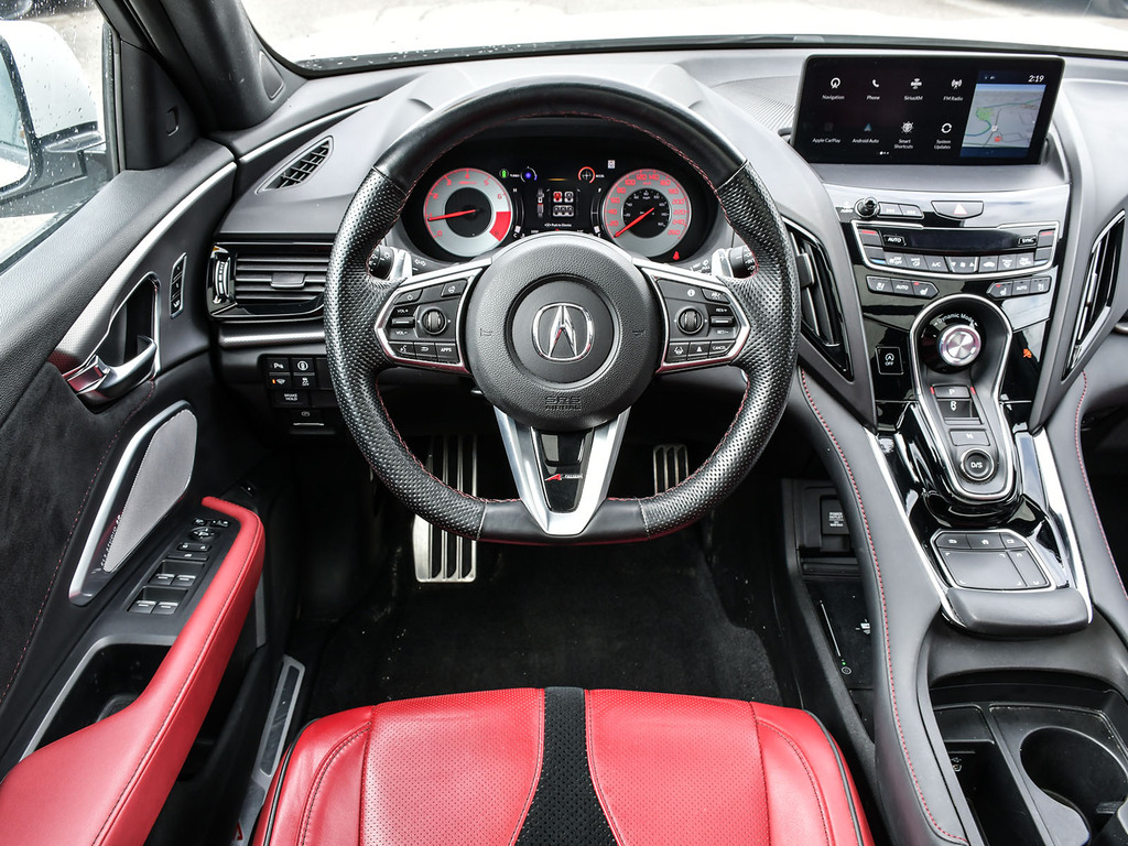 2023 Acura RDX A-spec. Acura Certified vehicle. 7 year 160,000 km warranty. Engine: 2.0L VTEC Turbocharged 4-cylinder. Power: 272 hp and 280 lb-ft of torque. Transmission: 10-speed automatic with paddle shifters. Drivetrain: Standard Super Handling All-Wheel Drive (SH-AWD) in Canada; available in both FWD and AWD in the US. Drive Modes: Features the Integrated Dynamics System (IDS) with four modes: Snow, Comfort, Normal, and Sport. Acura Newsroom Acura Newsroom +4 A-Spec Exclusive Styling Exterior: Gloss-black front and rear bumpers, dark chrome accents, and exclusive 20-inch Shark Gray alloy wheels. Interior: Perforated Milano leather-trimmed sport seats with Ultrasuede inserts, red ambient lighting, and a leather-wrapped flat-bottom sport steering wheel. Finishes: Ebony headliner and brushed aluminum trim. Acura Newsroom Acura Newsroom +3 Key Features & Technology Infotainment: 10.2-inch HD center display with the True Touchpad Interface. Connectivity: Wireless Apple CarPlay® and Android Auto, Amazon Alexa built-in, and a Wi-Fi hotspot. AcuraWatch: Standard suite includes Adaptive Cruise Control, Lane Keeping Assist, and Collision Mitigation Braking. Comfort: Panoramic moonroof, heated and ventilated front seats, and a hands-free power tailgate