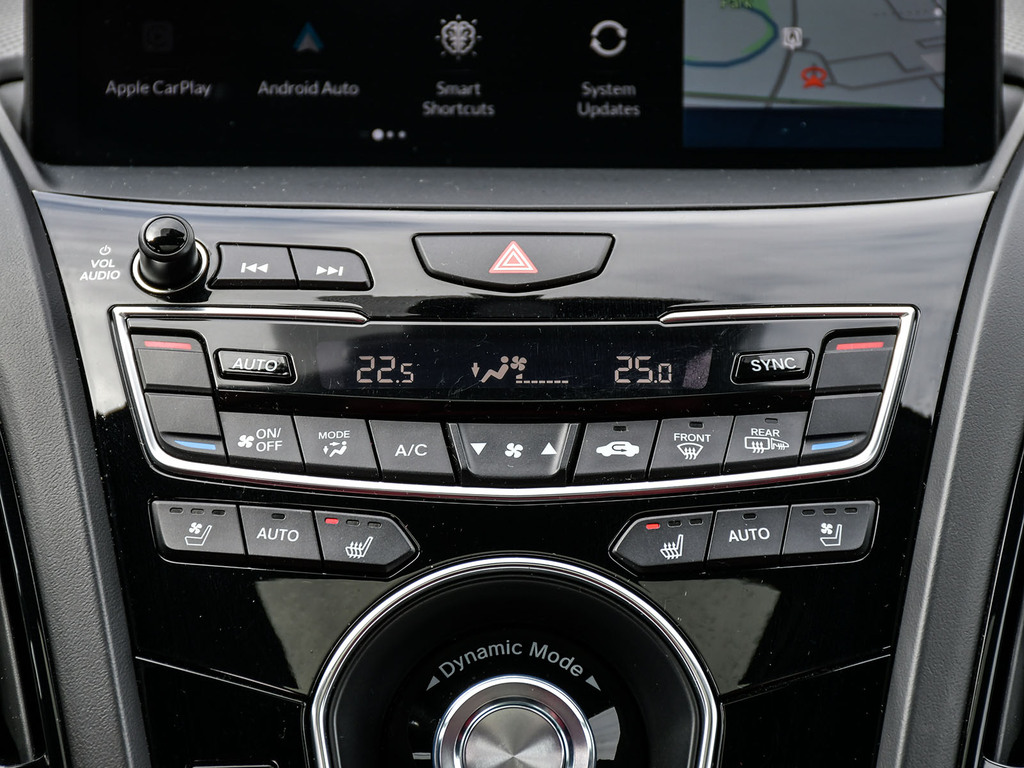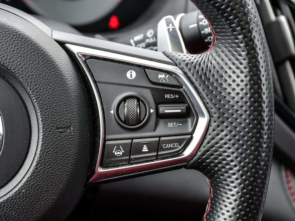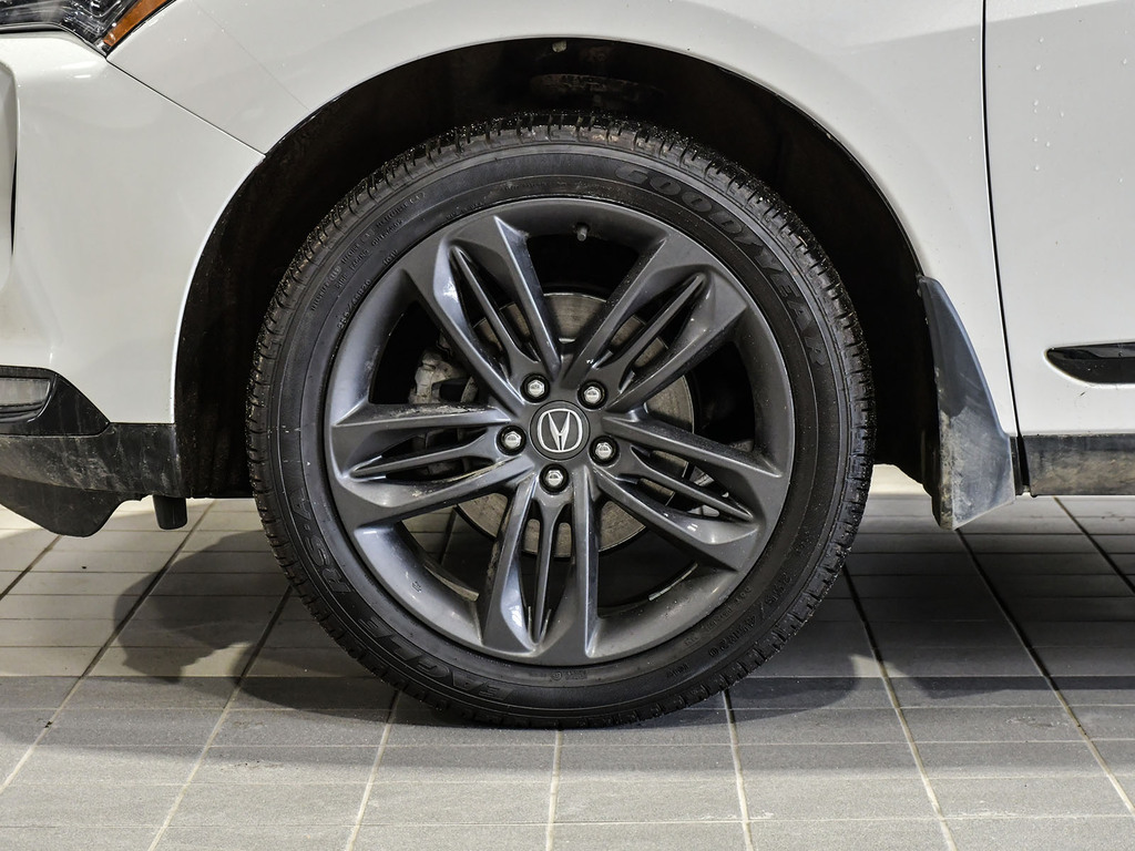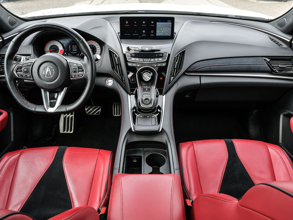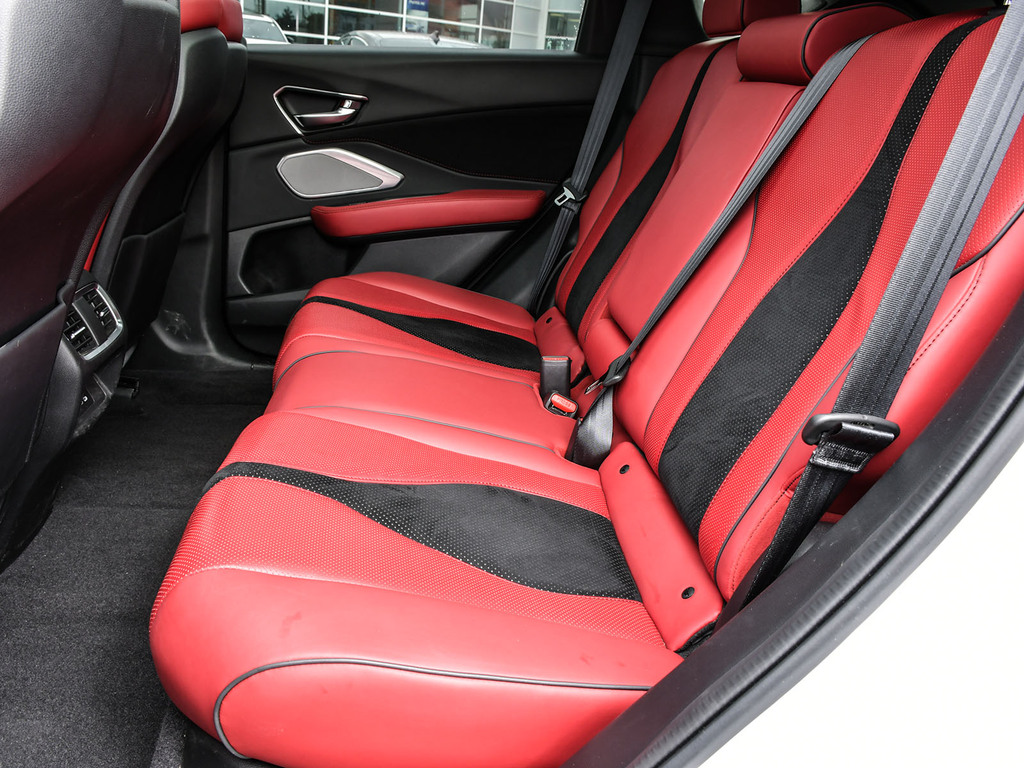2023 Acura RDX A-spec. Acura Certified vehicle. 7 year 160,000 km warranty. Engine: 2.0L VTEC Turbocharged 4-cylinder. Power: 272 hp and 280 lb-ft of torque. Transmission: 10-speed automatic with paddle shifters. Drivetrain: Standard Super Handling All-Wheel Drive (SH-AWD) in Canada; available in both FWD and AWD in the US. Drive Modes: Features the Integrated Dynamics System (IDS) with four modes: Snow, Comfort, Normal, and Sport. Acura Newsroom Acura Newsroom +4 A-Spec Exclusive Styling Exterior: Gloss-black front and rear bumpers, dark chrome accents, and exclusive 20-inch Shark Gray alloy wheels. Interior: Perforated Milano leather-trimmed sport seats with Ultrasuede inserts, red ambient lighting, and a leather-wrapped flat-bottom sport steering wheel. Finishes: Ebony headliner and brushed aluminum trim. Acura Newsroom Acura Newsroom +3 Key Features & Technology Infotainment: 10.2-inch HD center display with the True Touchpad Interface. Connectivity: Wireless Apple CarPlay® and Android Auto, Amazon Alexa built-in, and a Wi-Fi hotspot. AcuraWatch: Standard suite includes Adaptive Cruise Control, Lane Keeping Assist, and Collision Mitigation Braking. Comfort: Panoramic moonroof, heated and ventilated front seats, and a hands-free power tailgate