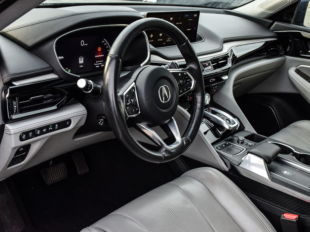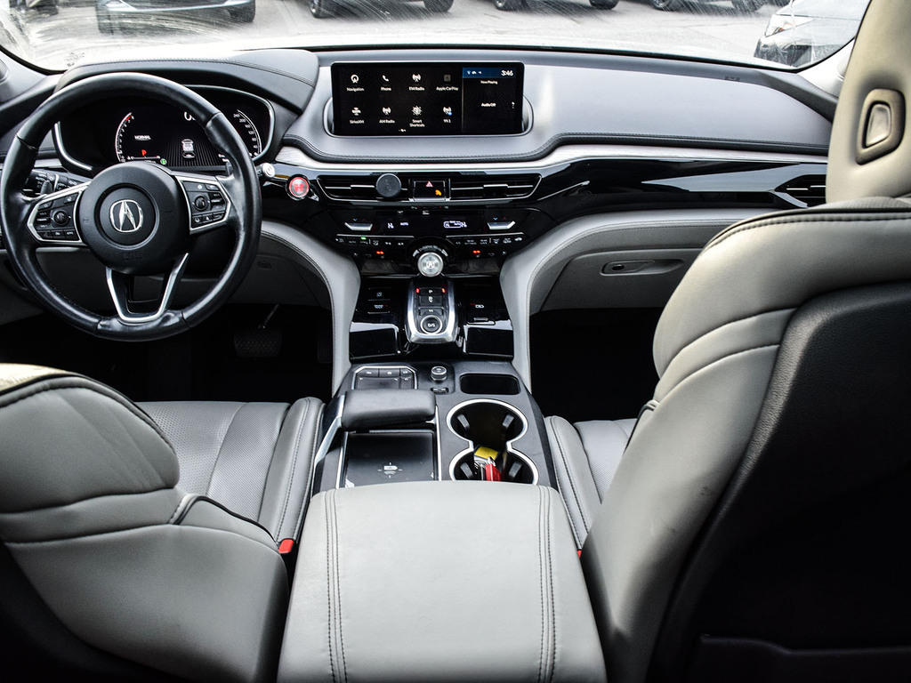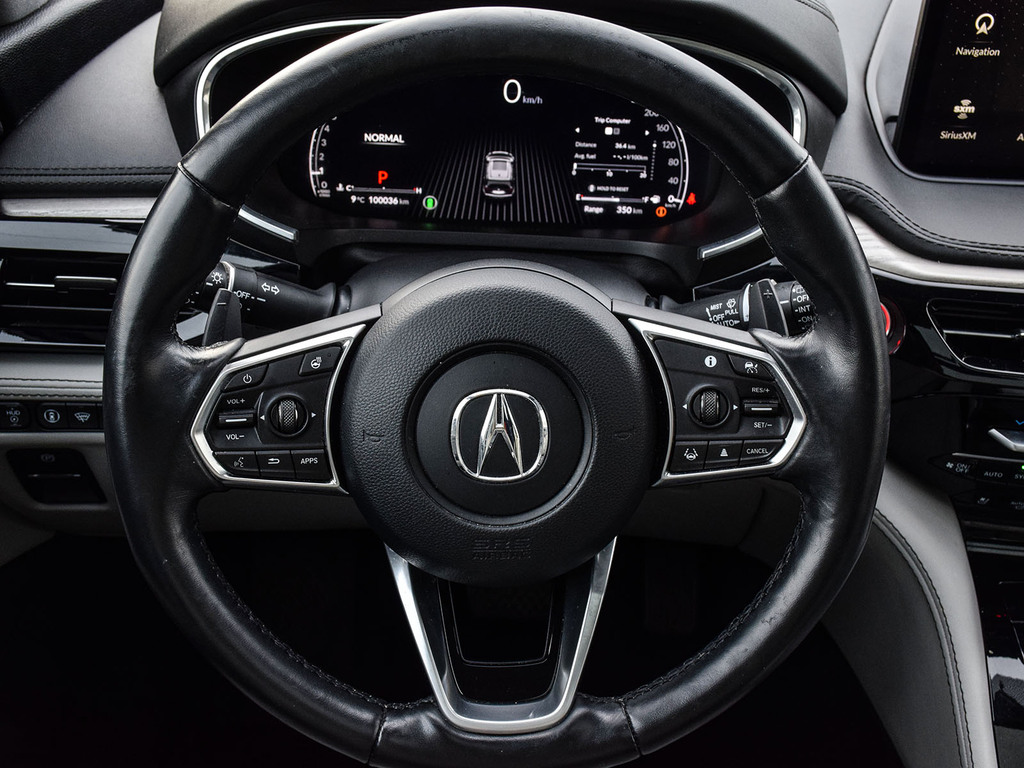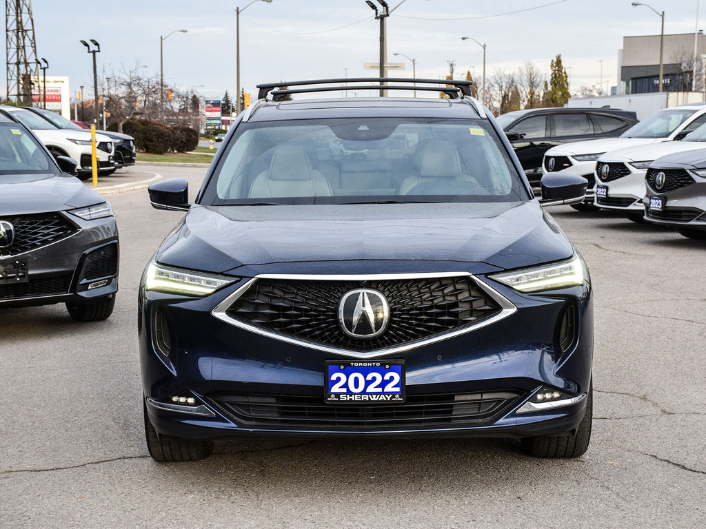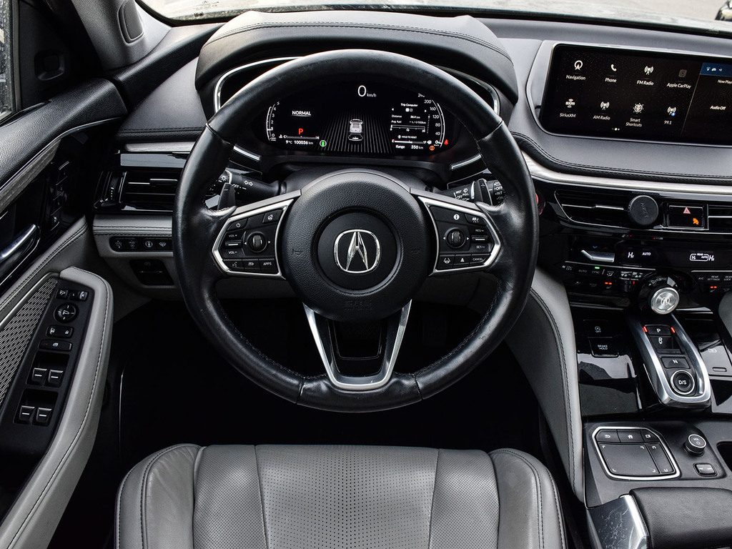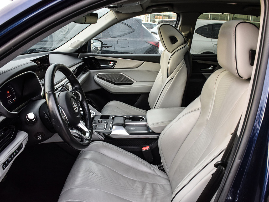 2022 Acura MDX Platinum Elite. Acura Certified vehicle. 7 year 160,000 km warranty. The 2022 Acura MDX Platinum Elite is a three-row luxury SUV featuring a 3.5L V6 engine, 10-speed automatic transmission, and Super Handling All-Wheel Drive (SH-AWD). It includes a wide array of luxury and technology features such as a 12.3-inch digital instrument cluster, a panoramic sunroof, and premium leather upholstery. Advanced safety features, including the AcuraWatch suite, are standard, and it offers a towing capacity of up to 5,000 lbs.
