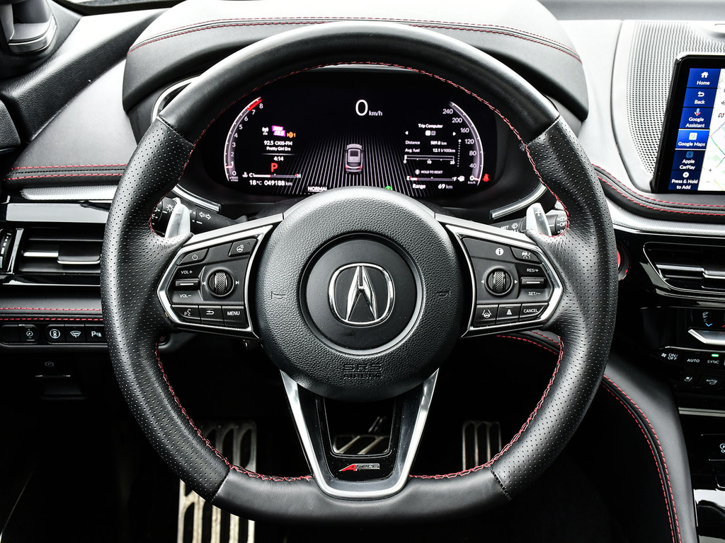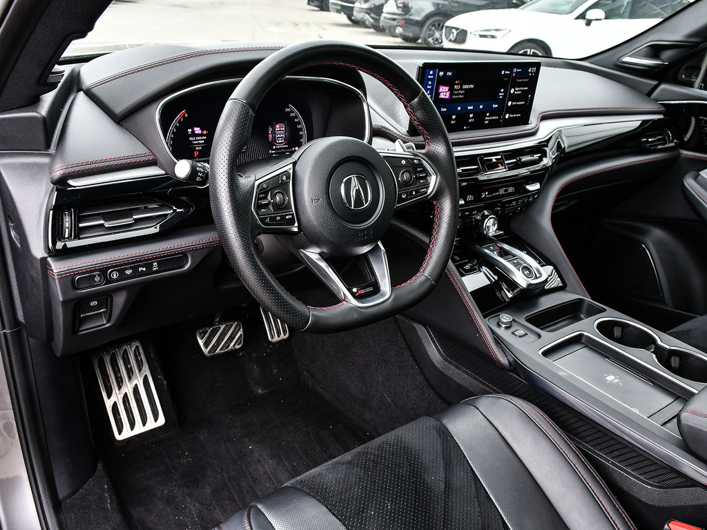 2025 Acura MDX A-spec. Acura Certified vehicle. 7 year 160,000 km warranty. 2025 Acura MDX A-Spec is a mid-size luxury SUV that received a significant mid-cycle refresh for the 2025 model year. Key 2025 Refreshes New Infotainment: Replaced the previous True Touchpad Interface with a 12.3-inch touchscreen featuring Google built-in (Google Maps, Assistant, and Play Store). Audio Upgrade: Features a new 19-speaker Bang & Olufsen luxury audio system as standard, replacing the previous ELS Studio system. Exterior Styling: Updated front fascia with a new frameless Diamond Pentagon grille and ''darker'' styling for the headlights and taillights. Quieter Cabin: Enhanced insulation and laminated rear door glass for better noise reduction.