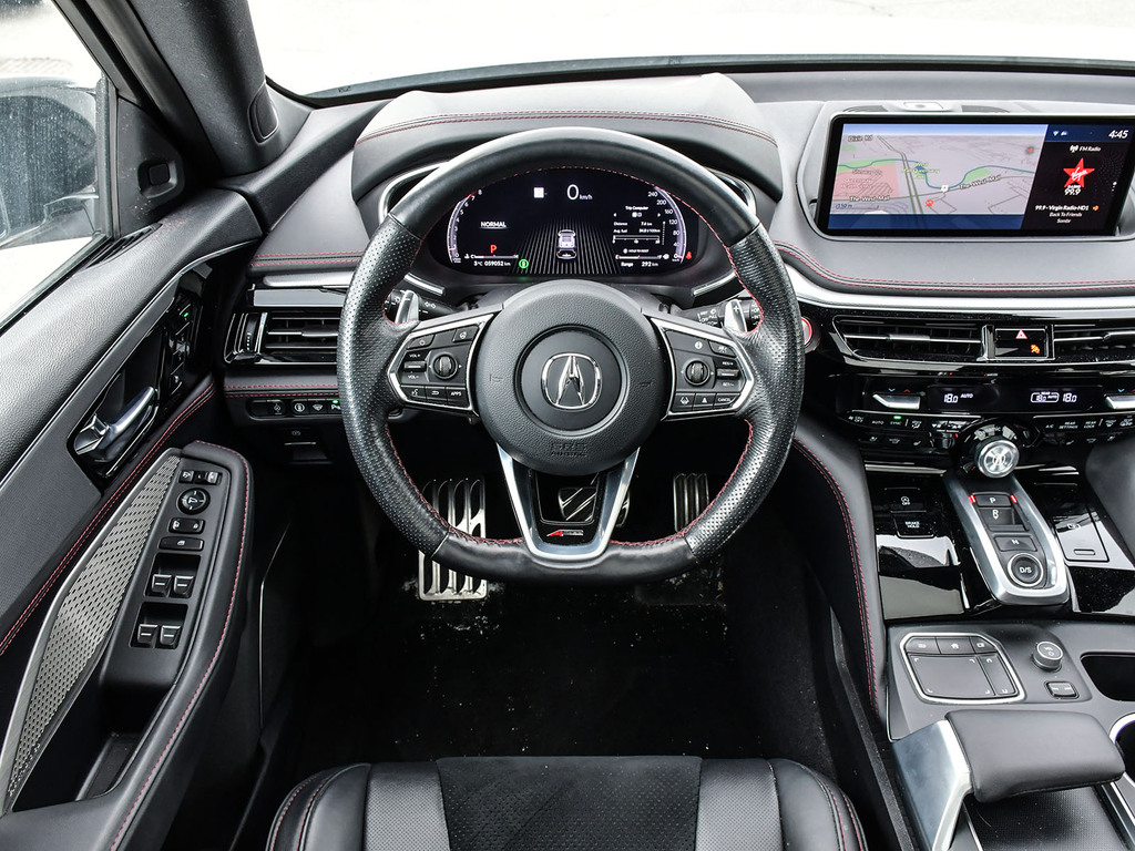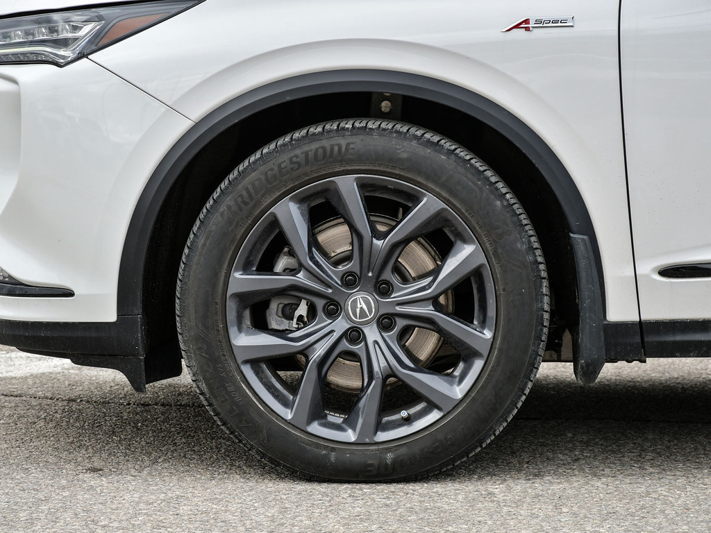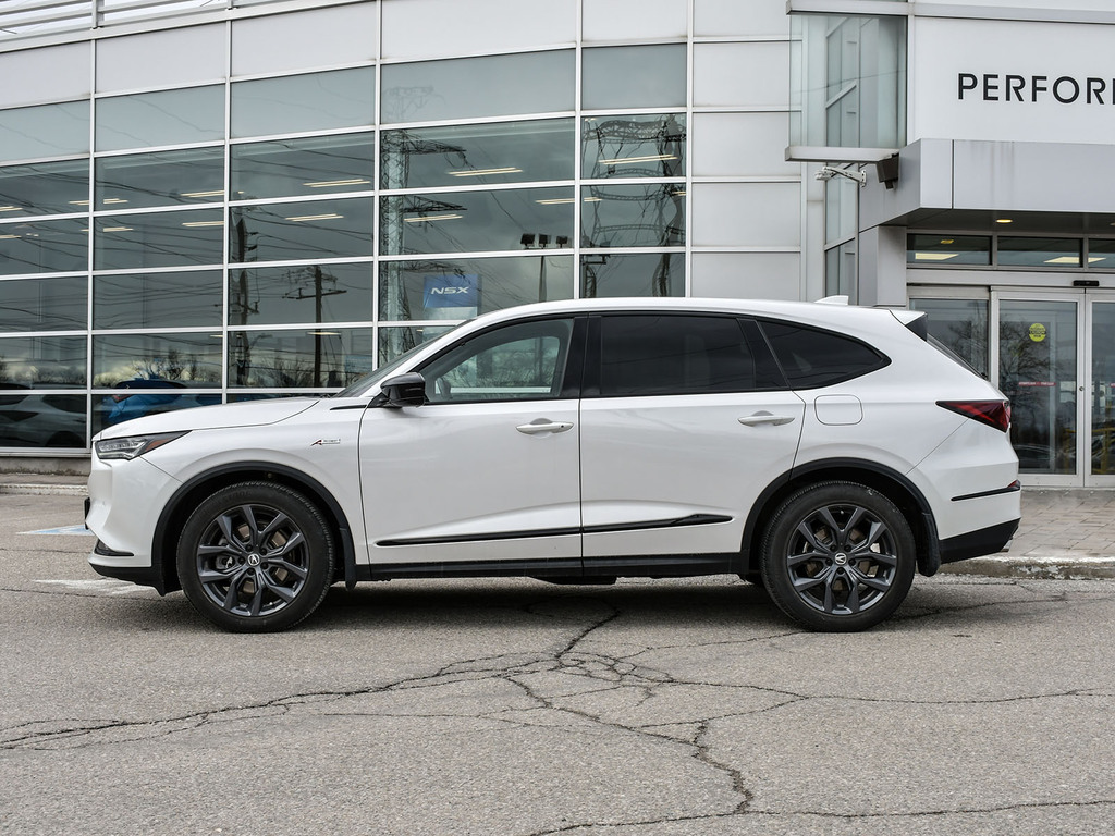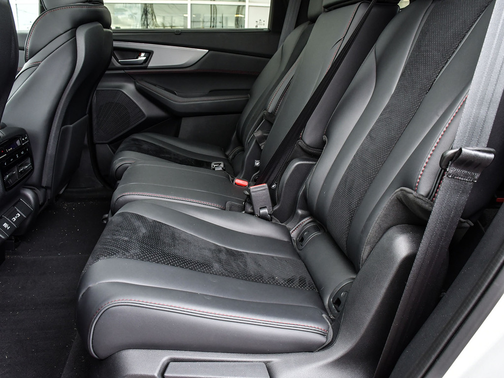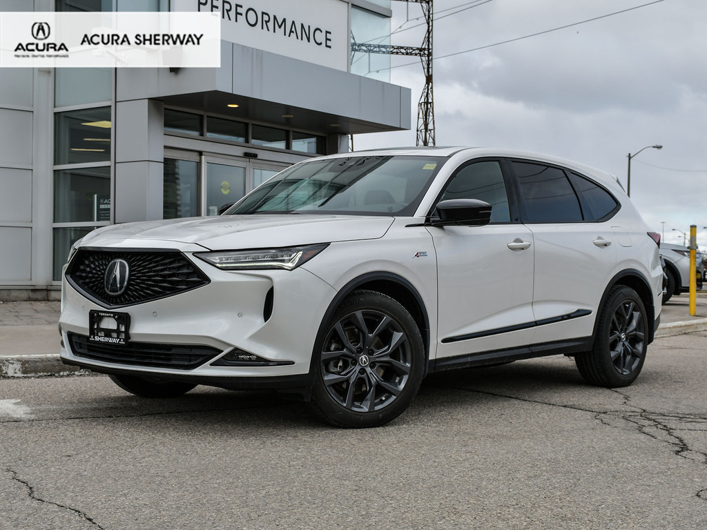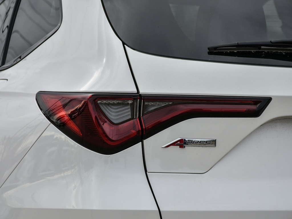 2023 Acura MDX A-spec. Acura Certified vehicle. 7 year 160,000 km warranty. The A-Spec package builds on the features of the Technology package, adding distinctive aesthetic and comfort upgrades. Exterior Styling: Features gloss black accents, dark-tinted lights, black trim, and large-diameter dual exhaust finishers for a bolder look. It rides on 20-inch Shark Gray aluminum alloy wheels. Interior Styling: The cabin features a sport-inspired design with NSX-inspired perforated Milano premium leather and Ultrasuede®-trimmed seating and red contrast stitching. It also includes a flat-bottom sport steering wheel, metal sport pedals, and available red leather interior. Audio System: Comes with an upgraded Acura/ELS Studio 3D® premium audio system with 16 speakers, including four overhead speakers. Comfort: Adds heated and ventilated front seats. It also features CabinTalk®, which allows front passengers' voices to be broadcast to the rear speakers