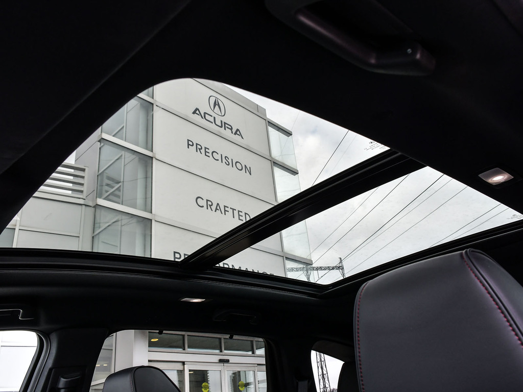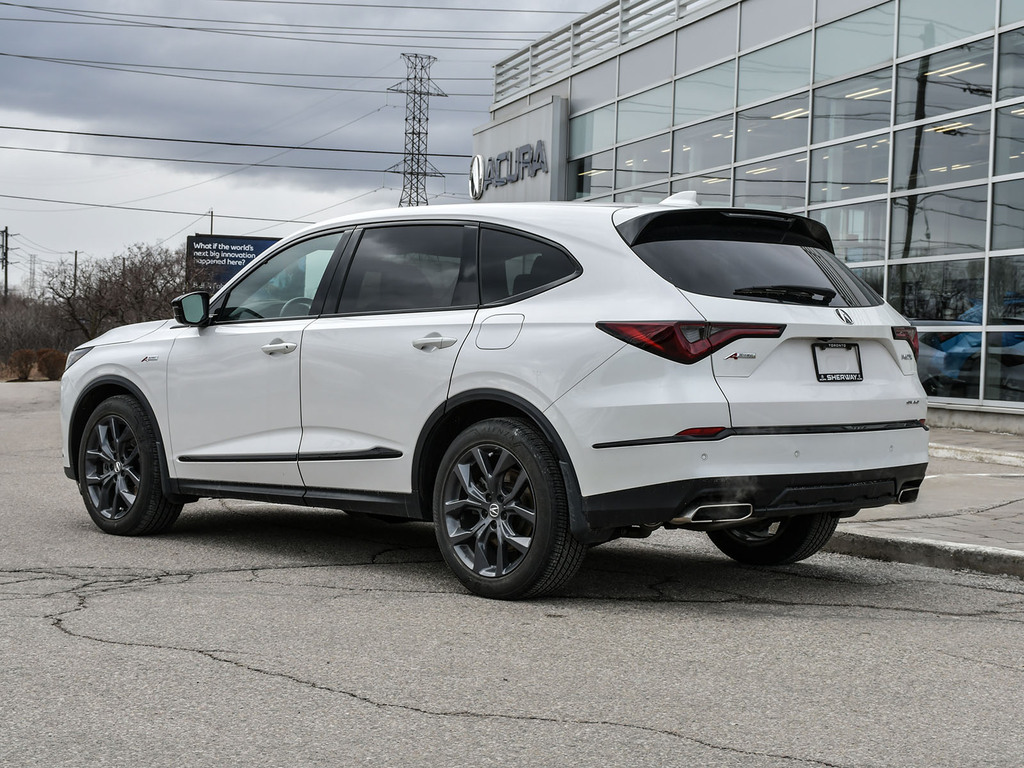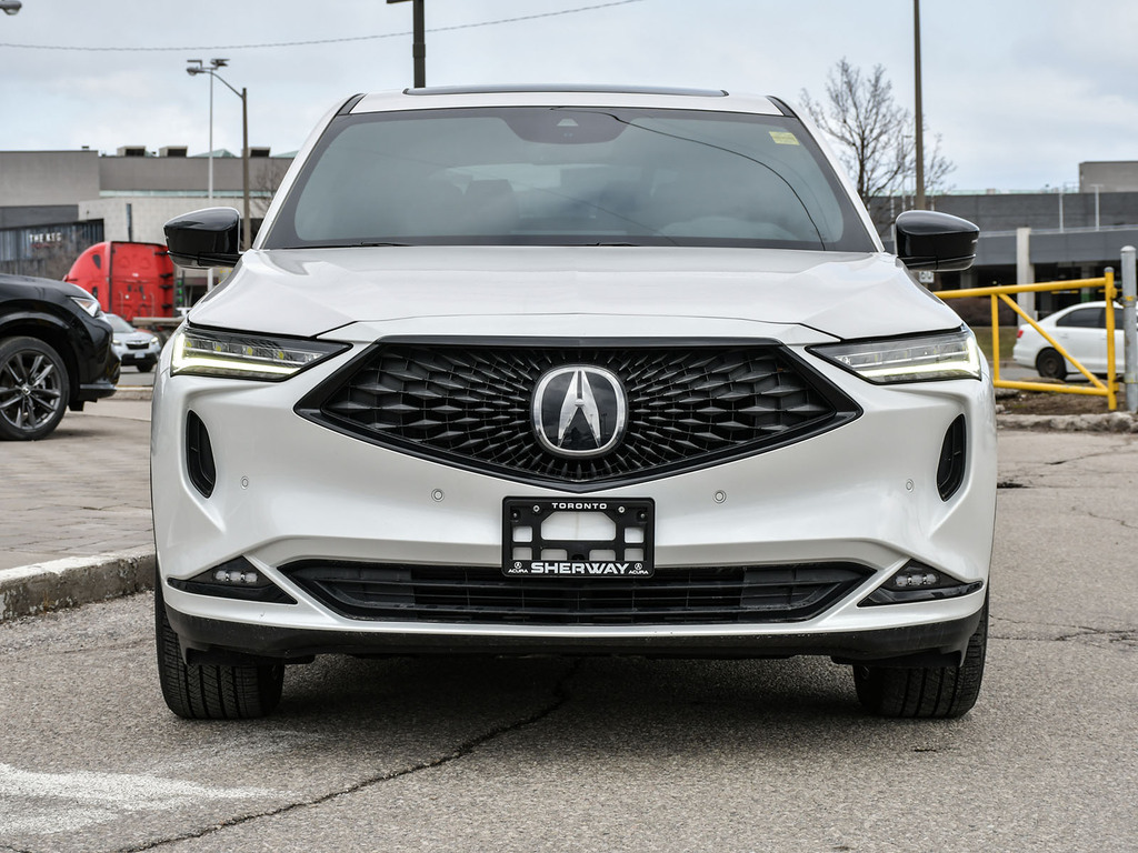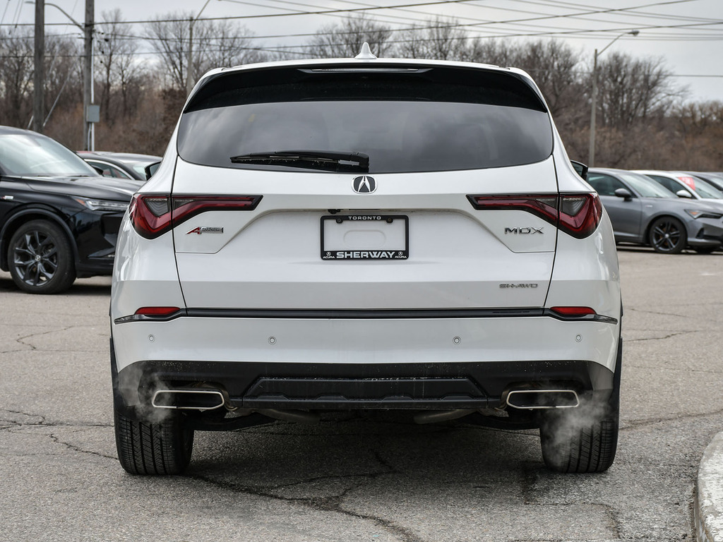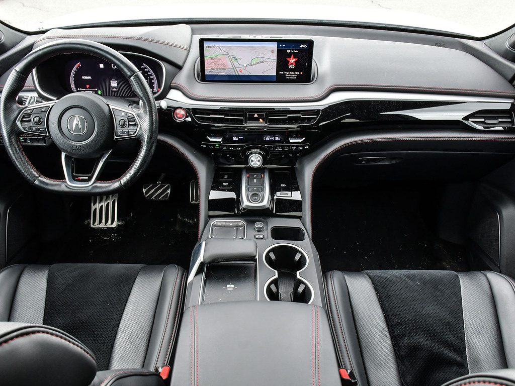 2023 Acura MDX A-spec. Acura Certified vehicle. 7 year 160,000 km warranty. The A-Spec package builds on the features of the Technology package, adding distinctive aesthetic and comfort upgrades. Exterior Styling: Features gloss black accents, dark-tinted lights, black trim, and large-diameter dual exhaust finishers for a bolder look. It rides on 20-inch Shark Gray aluminum alloy wheels. Interior Styling: The cabin features a sport-inspired design with NSX-inspired perforated Milano premium leather and Ultrasuede®-trimmed seating and red contrast stitching. It also includes a flat-bottom sport steering wheel, metal sport pedals, and available red leather interior. Audio System: Comes with an upgraded Acura/ELS Studio 3D® premium audio system with 16 speakers, including four overhead speakers. Comfort: Adds heated and ventilated front seats. It also features CabinTalk®, which allows front passengers' voices to be broadcast to the rear speakers