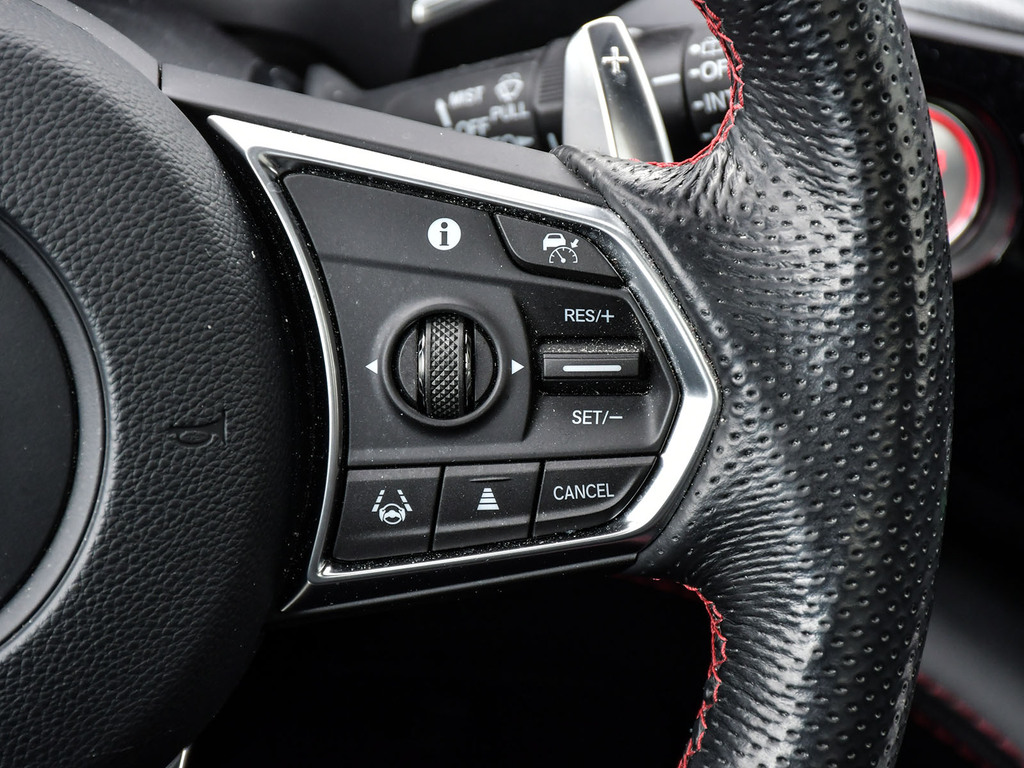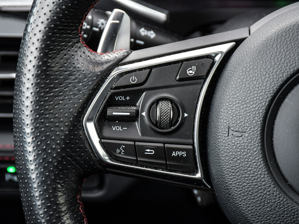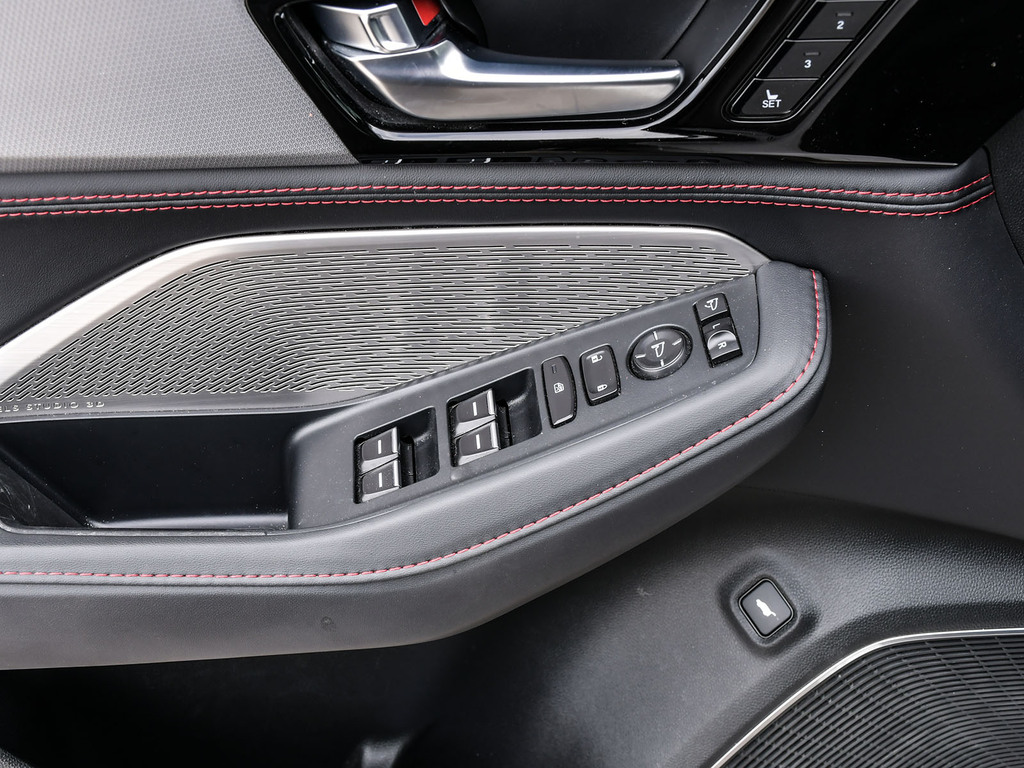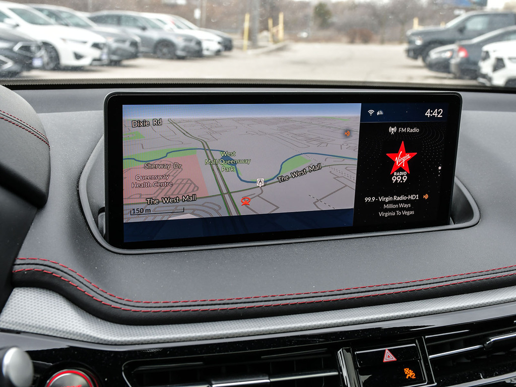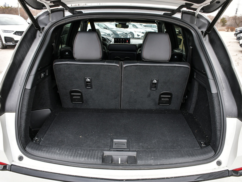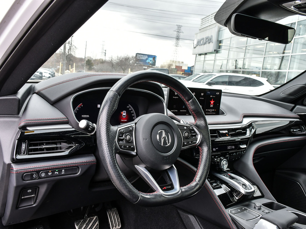 2023 Acura MDX A-spec. Acura Certified vehicle. 7 year 160,000 km warranty. The A-Spec package builds on the features of the Technology package, adding distinctive aesthetic and comfort upgrades. Exterior Styling: Features gloss black accents, dark-tinted lights, black trim, and large-diameter dual exhaust finishers for a bolder look. It rides on 20-inch Shark Gray aluminum alloy wheels. Interior Styling: The cabin features a sport-inspired design with NSX-inspired perforated Milano premium leather and Ultrasuede®-trimmed seating and red contrast stitching. It also includes a flat-bottom sport steering wheel, metal sport pedals, and available red leather interior. Audio System: Comes with an upgraded Acura/ELS Studio 3D® premium audio system with 16 speakers, including four overhead speakers. Comfort: Adds heated and ventilated front seats. It also features CabinTalk®, which allows front passengers' voices to be broadcast to the rear speakers