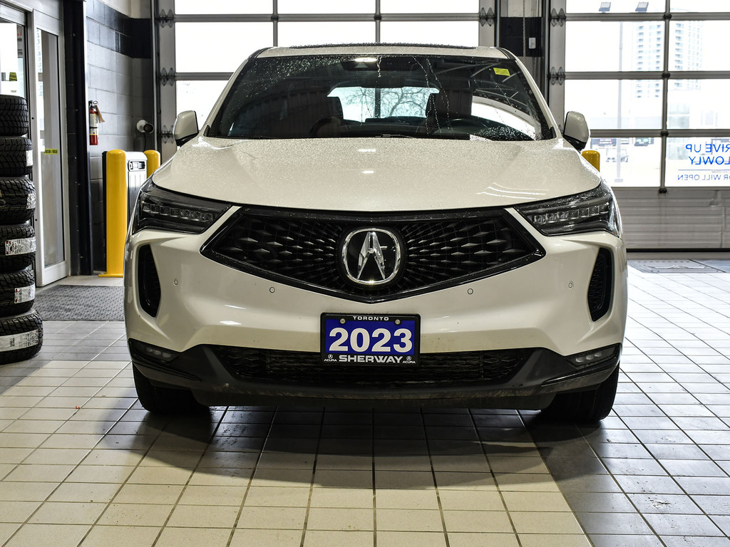 2023 Acura RDX A-spec. Acura Certified vehicle. 7 year 160,000 km warranty. Engine: 2.0L VTEC Turbocharged 4-cylinder. Power: 272 hp and 280 lb-ft of torque. Transmission: 10-speed automatic with paddle shifters. Drivetrain: Standard Super Handling All-Wheel Drive (SH-AWD) in Canada; available in both FWD and AWD in the US. Drive Modes: Features the Integrated Dynamics System (IDS) with four modes: Snow, Comfort, Normal, and Sport. Acura Newsroom Acura Newsroom +4 A-Spec Exclusive Styling Exterior: Gloss-black front and rear bumpers, dark chrome accents, and exclusive 20-inch Shark Gray alloy wheels. Interior: Perforated Milano leather-trimmed sport seats with Ultrasuede inserts, red ambient lighting, and a leather-wrapped flat-bottom sport steering wheel. Finishes: Ebony headliner and brushed aluminum trim. Acura Newsroom Acura Newsroom +3 Key Features & Technology Infotainment: 10.2-inch HD center display with the True Touchpad Interface. Connectivity: Wireless Apple CarPlay® and Android Auto, Amazon Alexa built-in, and a Wi-Fi hotspot. AcuraWatch: Standard suite includes Adaptive Cruise Control, Lane Keeping Assist, and Collision Mitigation Braking. Comfort: Panoramic moonroof, heated and ventilated front seats, and a hands-free power tailgate