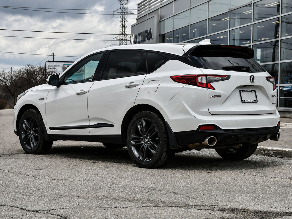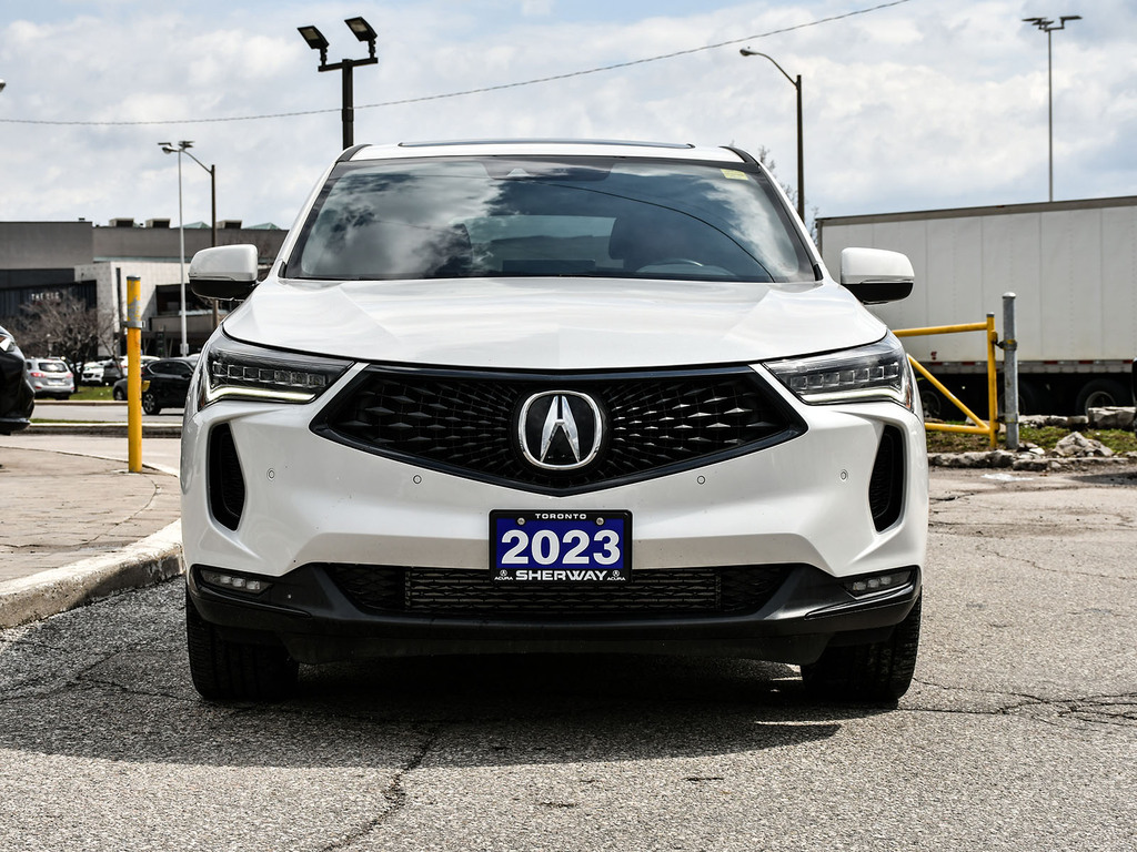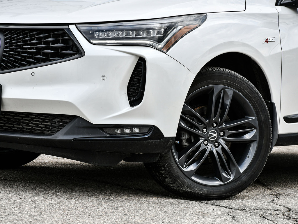 2023 Acura RDX A-spec. Acura Certified vehicle. 7 year 160,000 km warranty. Engine: 2.0L VTEC® turbocharged 4-cylinder engine. Power Output: Produces 272 horsepower at 6,500 rpm and 280 lb-ft of torque at 1,6004,500 rpm. Transmission: 10-speed automatic transmission with Sequential SportShift paddle shifters. Drivetrain: Standard Super Handling All-Wheel Drive (SH-AWD®) in Canada. The A-Spec trim focuses on a ''premium sportiness'' aesthetic both inside and out: Exterior: Features a gloss black Diamond Pentagon grille, black window trim, LED fog lights, and massive 4-inch dual exhaust finishers. It rides on 20-inch Shark Grey aluminum-alloy wheels. Interior: Includes a leather-wrapped flat-bottom sport steering wheel and seats finished in perforated Milano premium leather with Ultrasuede® inserts. Audio: Comes standard with the ELS Studio 3D® Premium Audio System featuring 16 speakers