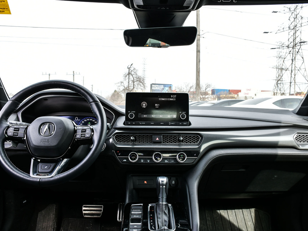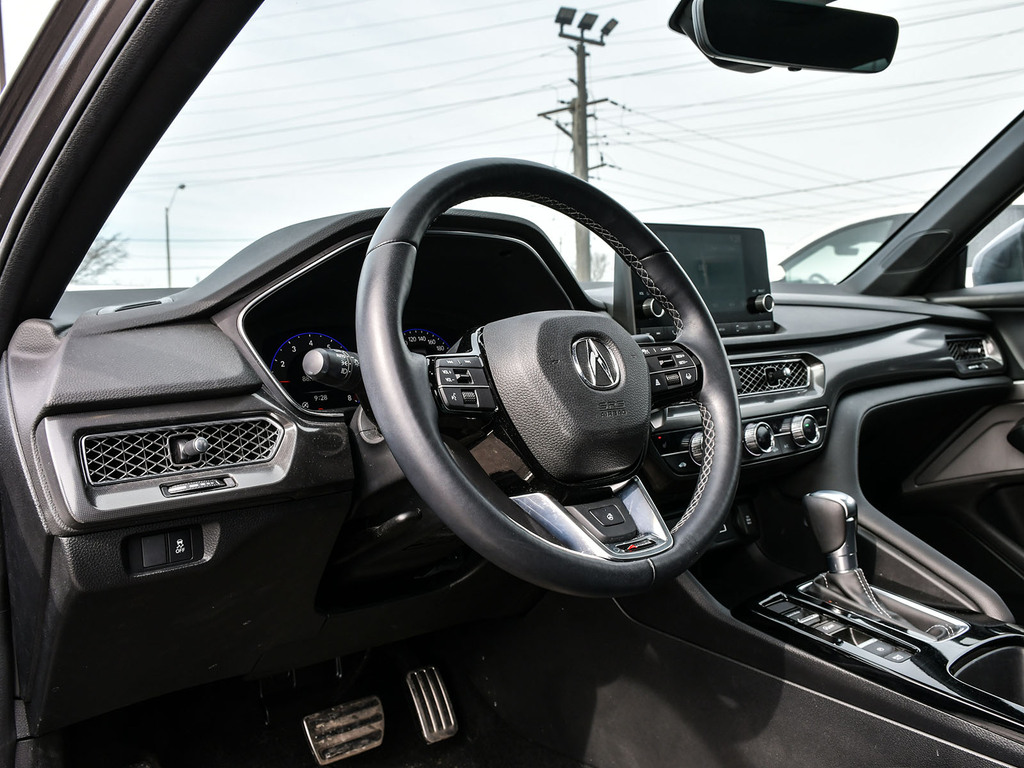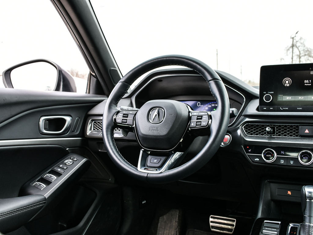 2024 Acura Integra A-spec. Acura Certified vehicle. 7 year 160,000 km warranty. Exterior: Includes 18-inch Shark Gray alloy wheels, a gloss black rear lip spoiler, and LED fog lights. Interior: Features stainless steel sport pedals, red contrast stitching, and an A-Spec badged steering wheel. Seats: Standard A-Spec uses synthetic leather; upgrading to the Tech package adds Ultrasuede inserts. 2024 Acura Integra A-Spec is a premium liftback designed to balance sporty performance with daily practicality. It is powered by a 1.5L turbocharged 4-cylinder engine delivering 200 horsepower and 192 lb-ft of torque