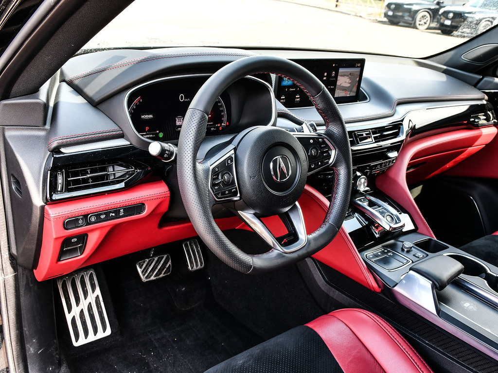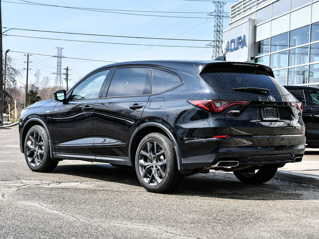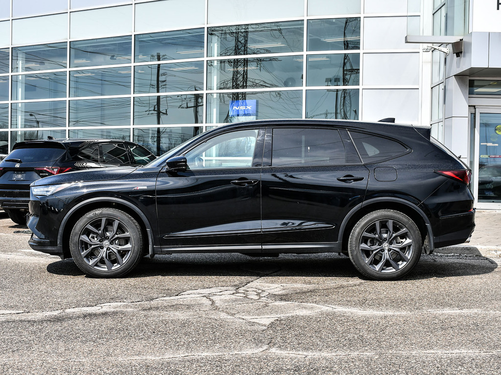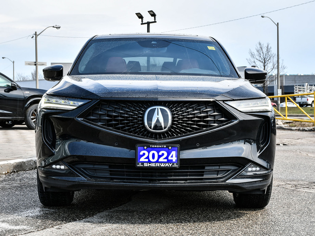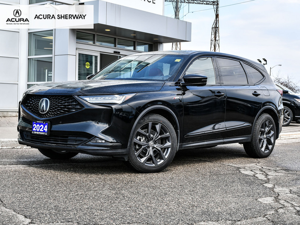 2024 Acura MDX A-spec. Acura Certified vehicle. 7 year 160,000 km warranty. A-Spec Exclusive Features The A-Spec trim focuses on a ''sport-appearance'' theme, adding several interior and exterior upgrades over the base and Technology models: Exterior Styling: Gloss black accents (grille, window trim, headlights/taillights), LED fog lights, and 20-inch Shark Gray alloy wheels. Interior Upgrades: Perforated Milano Premium Leather and Ultrasuede®-trimmed seats with contrast stitching and piping, a flat-bottom sport steering wheel, and metal sport pedals. Premium Audio: A 16-speaker ELS Studio 3D® Premium Audio System. Ventilated Front Seats: Standard on A-Spec, providing cooling comfort in addition to heating. CabinTalk®: An in-car intercom system that allows the driver to communicate with passengers in the rear rows