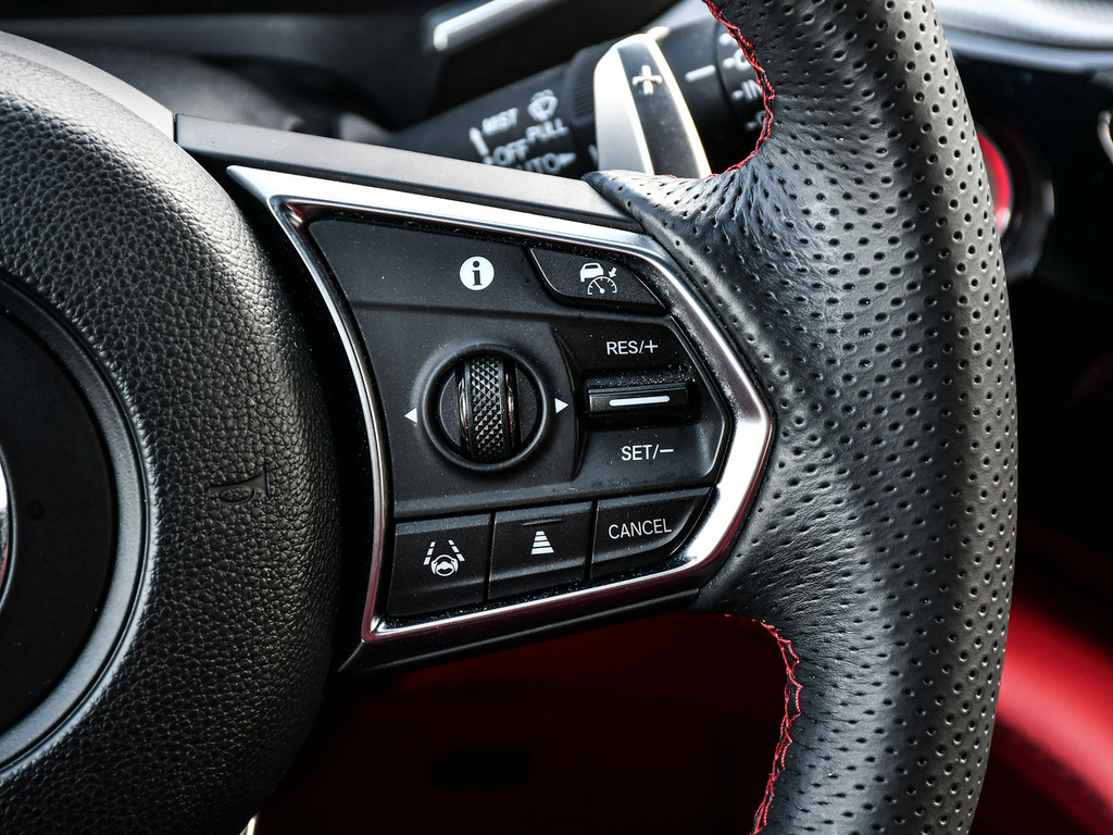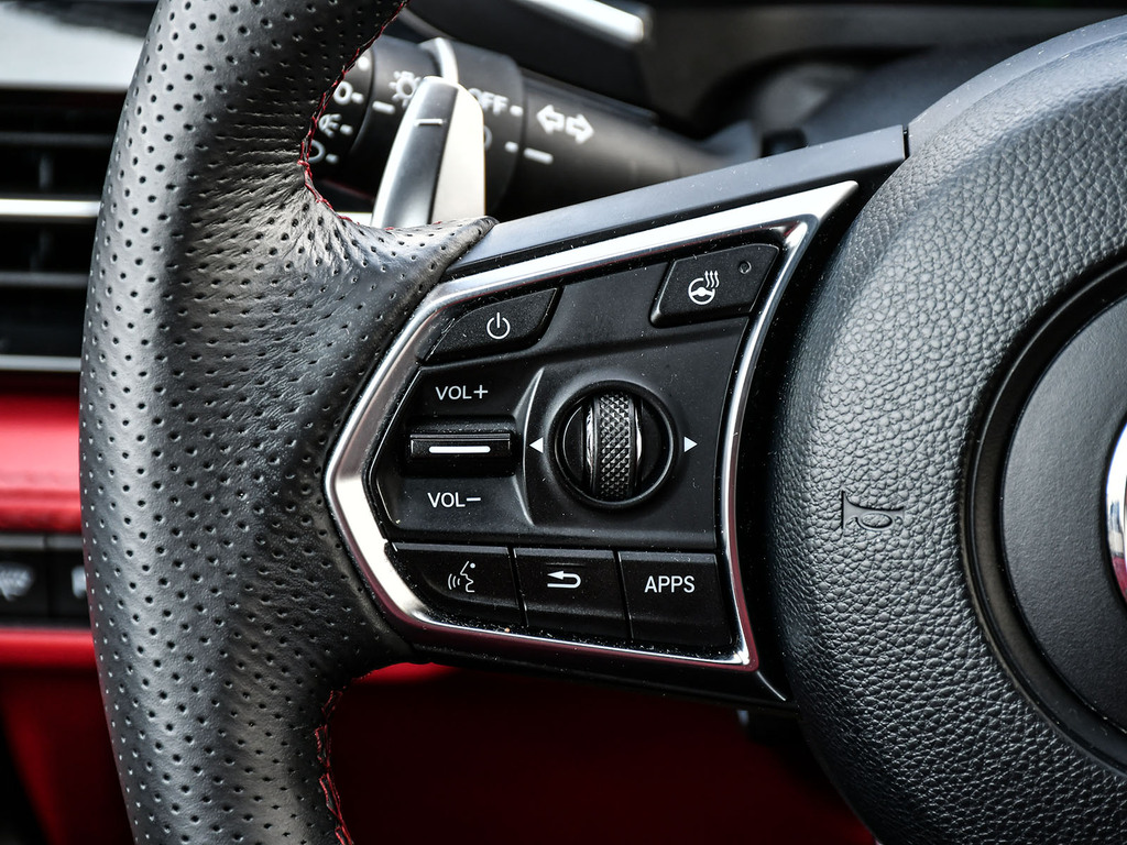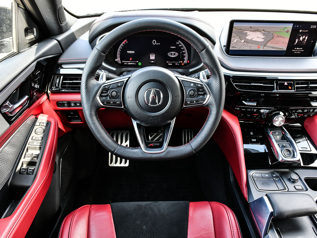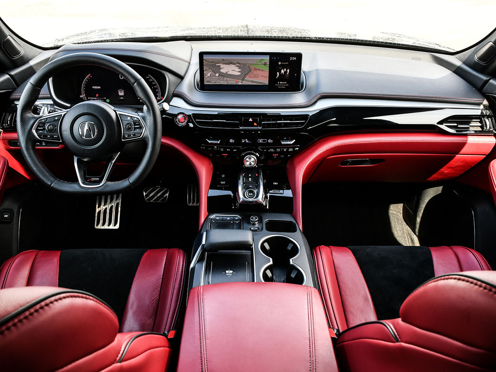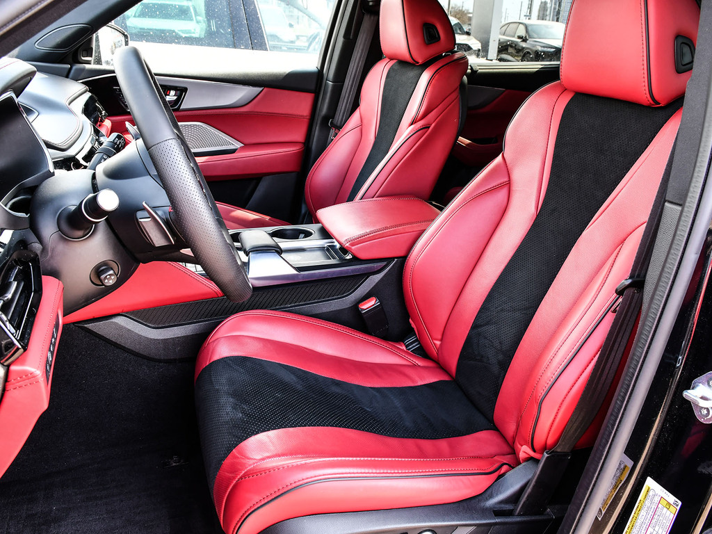 2024 Acura MDX A-spec. Acura Certified vehicle. 7 year 160,000 km warranty. A-Spec Exclusive Features The A-Spec trim focuses on a ''sport-appearance'' theme, adding several interior and exterior upgrades over the base and Technology models: Exterior Styling: Gloss black accents (grille, window trim, headlights/taillights), LED fog lights, and 20-inch Shark Gray alloy wheels. Interior Upgrades: Perforated Milano Premium Leather and Ultrasuede®-trimmed seats with contrast stitching and piping, a flat-bottom sport steering wheel, and metal sport pedals. Premium Audio: A 16-speaker ELS Studio 3D® Premium Audio System. Ventilated Front Seats: Standard on A-Spec, providing cooling comfort in addition to heating. CabinTalk®: An in-car intercom system that allows the driver to communicate with passengers in the rear rows