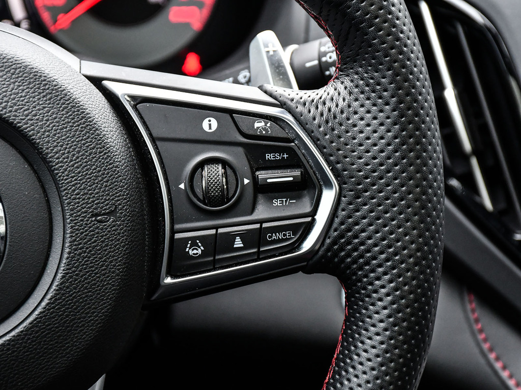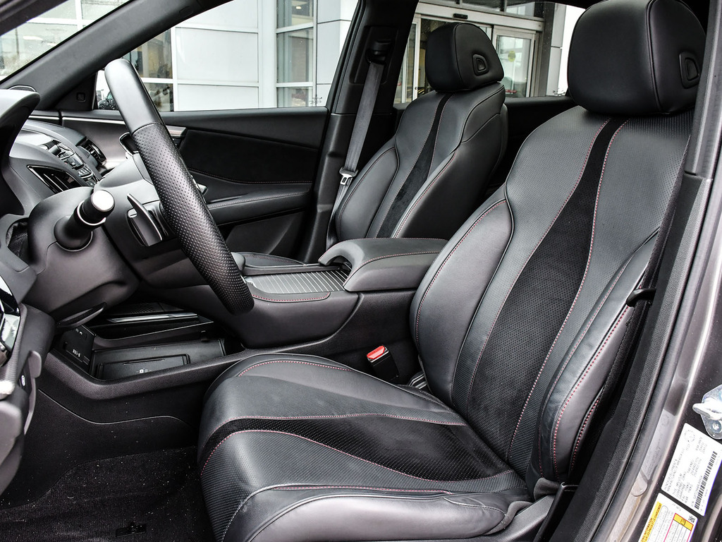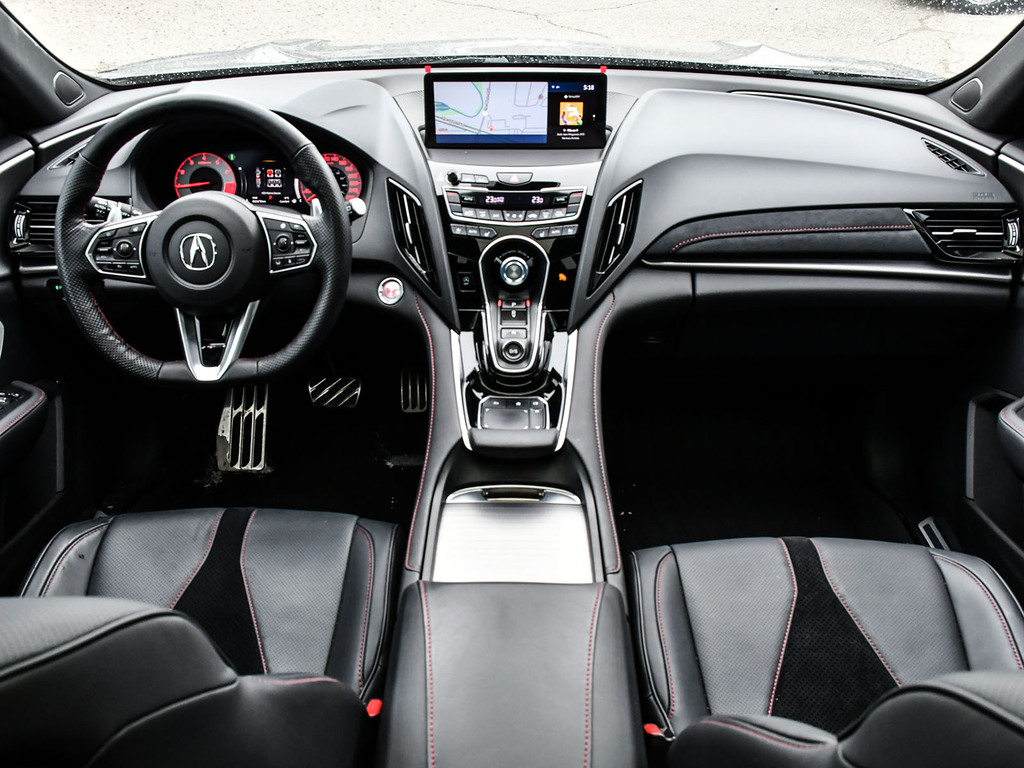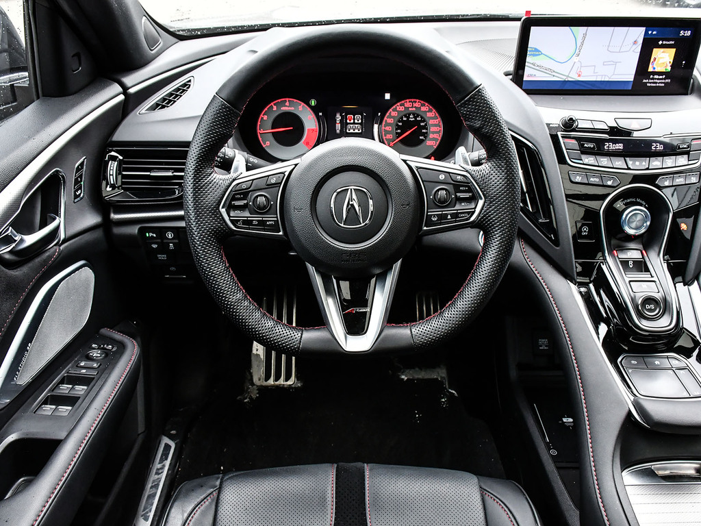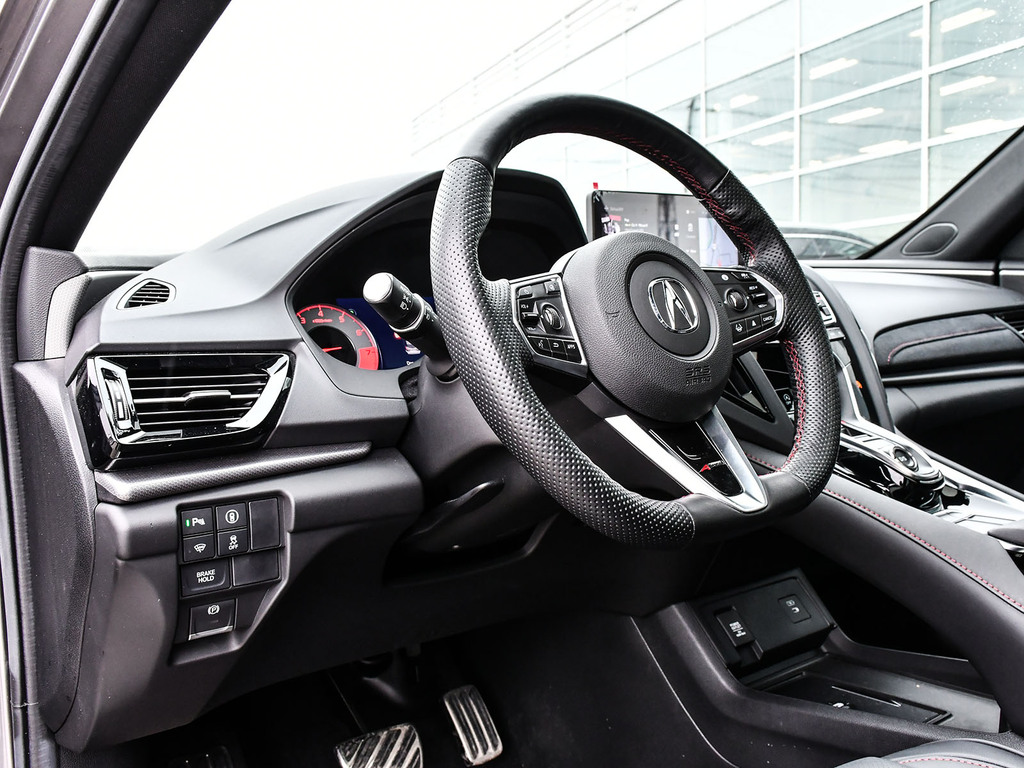 2024 Acura RDX A-spec. Acura Certified vehicle. 7 year 160,000 km warranty. Engine: 2.0L VTEC® turbocharged 4-cylinder. Output: 272 horsepower and 280 lb-ft of torque. Transmission: 10-speed automatic with plated paddle shifters. Exterior Styling: Unique A-Spec front and rear bumpers, a gloss-black ''Diamond Pentagon'' grille, and dual round exhaust finishers. Wheels: 20-inch Shark Grey split five-spoke aluminum-alloy wheels. Premium Audio: 16-speaker ELS Studio 3D® Premium Audio System, compared to the 12-speaker system in lower trims. Interior Accents: A flat-bottom sport steering wheel, metal sport pedals, and seats featuring Ultrasuede® inserts with contrast stitching.