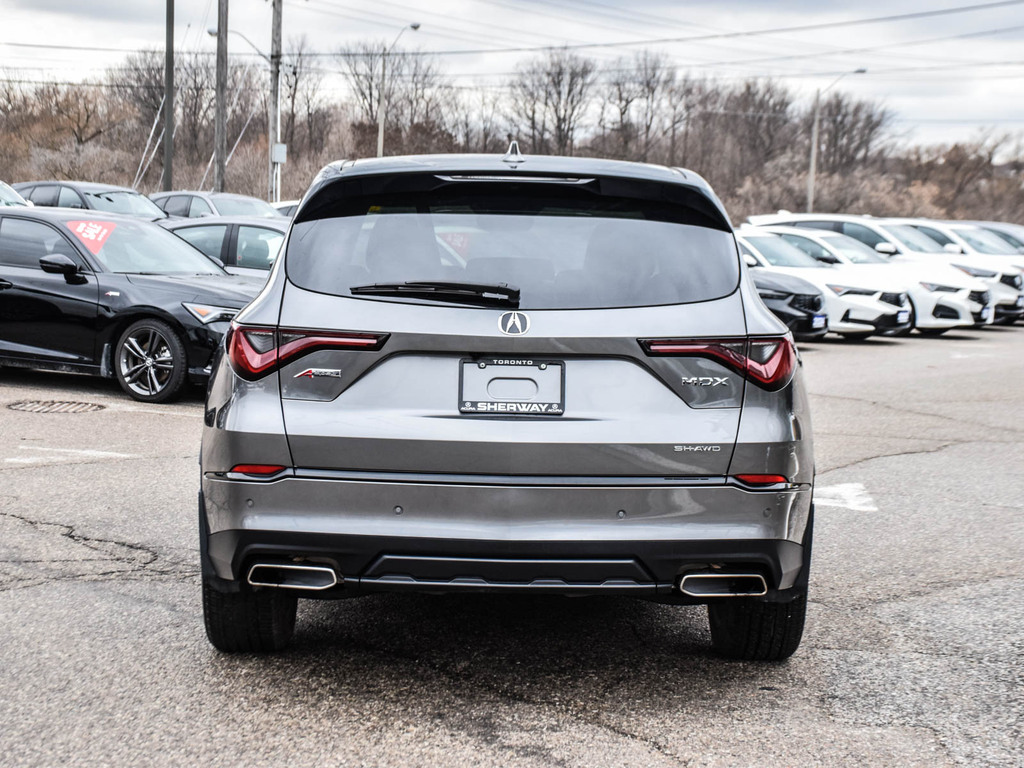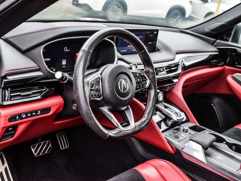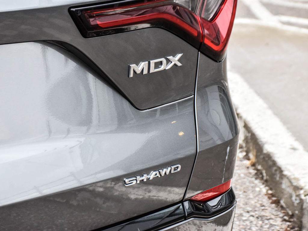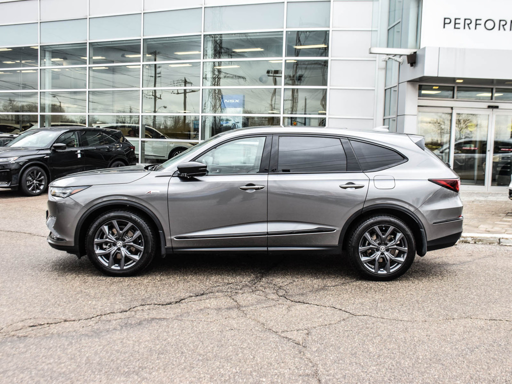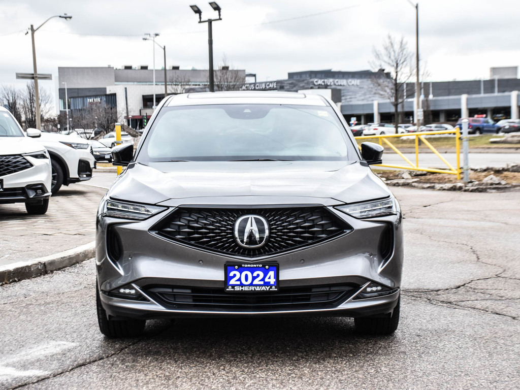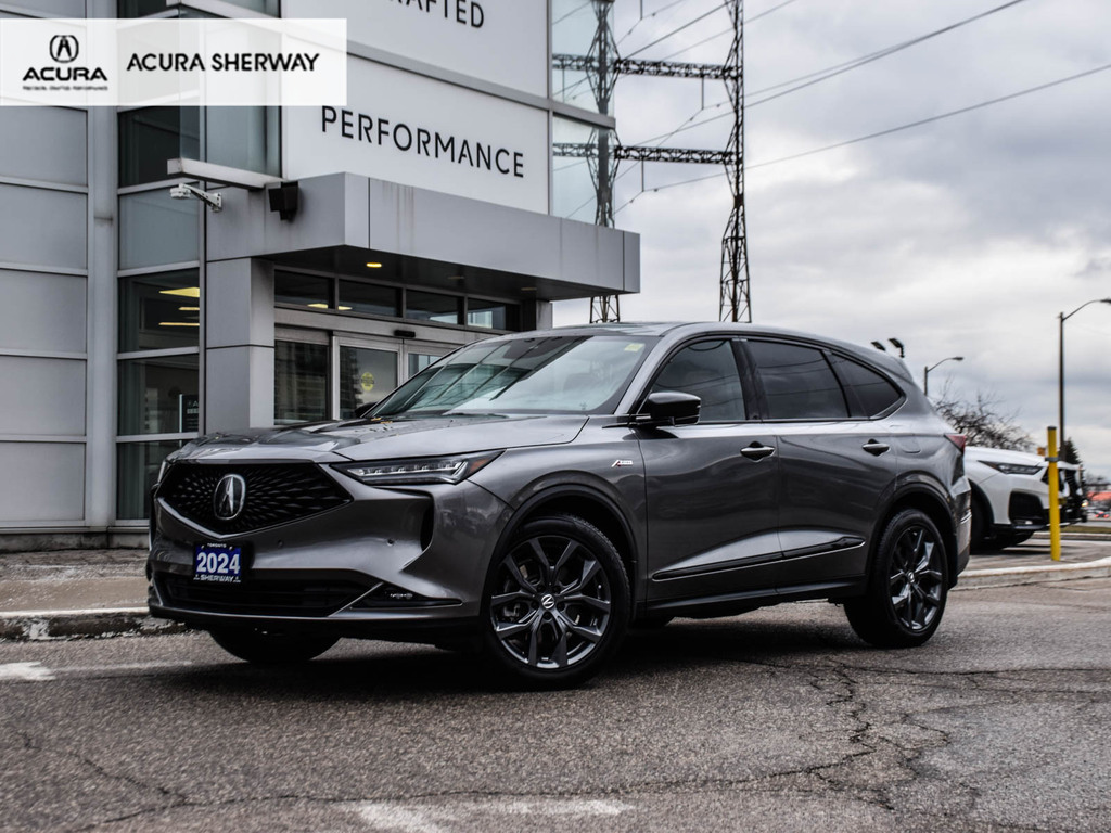 2024 Acura MDX A-spec. Acura Certified vehicle. 7 year 160,000 km warranty. The 2024 Acura MDX A-Spec is a luxury midsize SUV featuring a 290-horsepower 3.5L V6 engine, a 10-speed automatic transmission, and Super Handling All-Wheel Drive (SH-AWD) The A-Spec package enhances the MDX's appeal with unique styling and comfort features beyond the Tech trim: Exterior Styling: Features a sport appearance package with gloss black accents and 20-inch Shark Gray alloy wheels. It also adds LED fog lights. Interior Styling: Includes Sport A-Spec® seats with perforated Milano Premium Leather and Ultrasuede® trim, contrast stitching and piping, and an ebony headliner. Comfort & Convenience: Offers heated and ventilated front seats, a leather-wrapped flat-bottom sport steering wheel, and metal sport pedals. Audio System: Comes with an upgraded ELS Studio 3D® 16-speaker premium audio system for an immersive sound experience. AcuraWatch: A comprehensive suite of standard safety and driver-assistance technologies including Collision Mitigation Braking System, Adaptive Cruise Control, Lane Keeping Assist, and Blind Spot Information system.