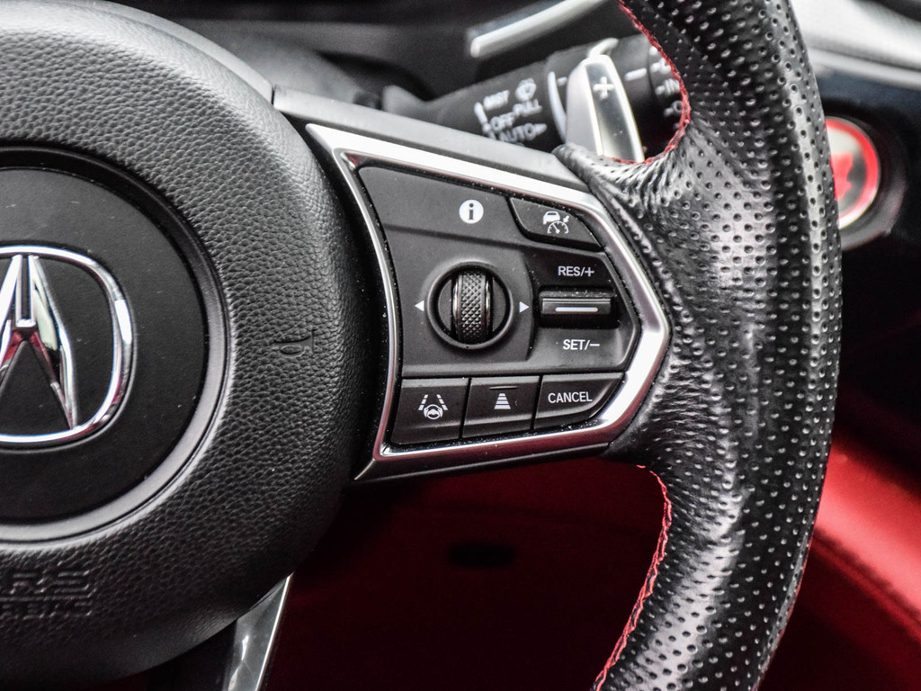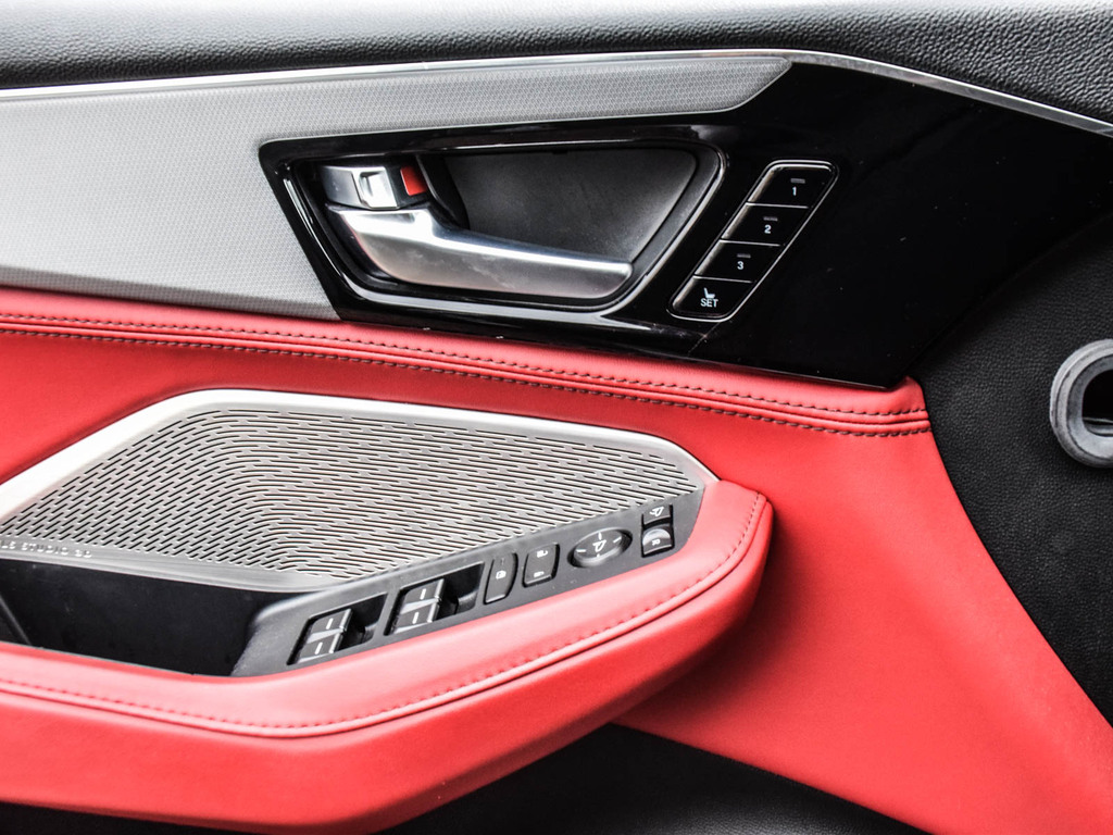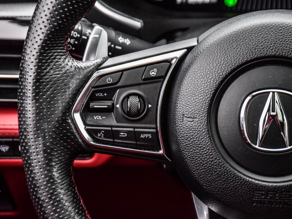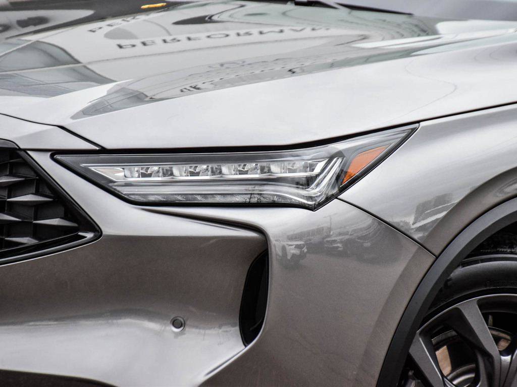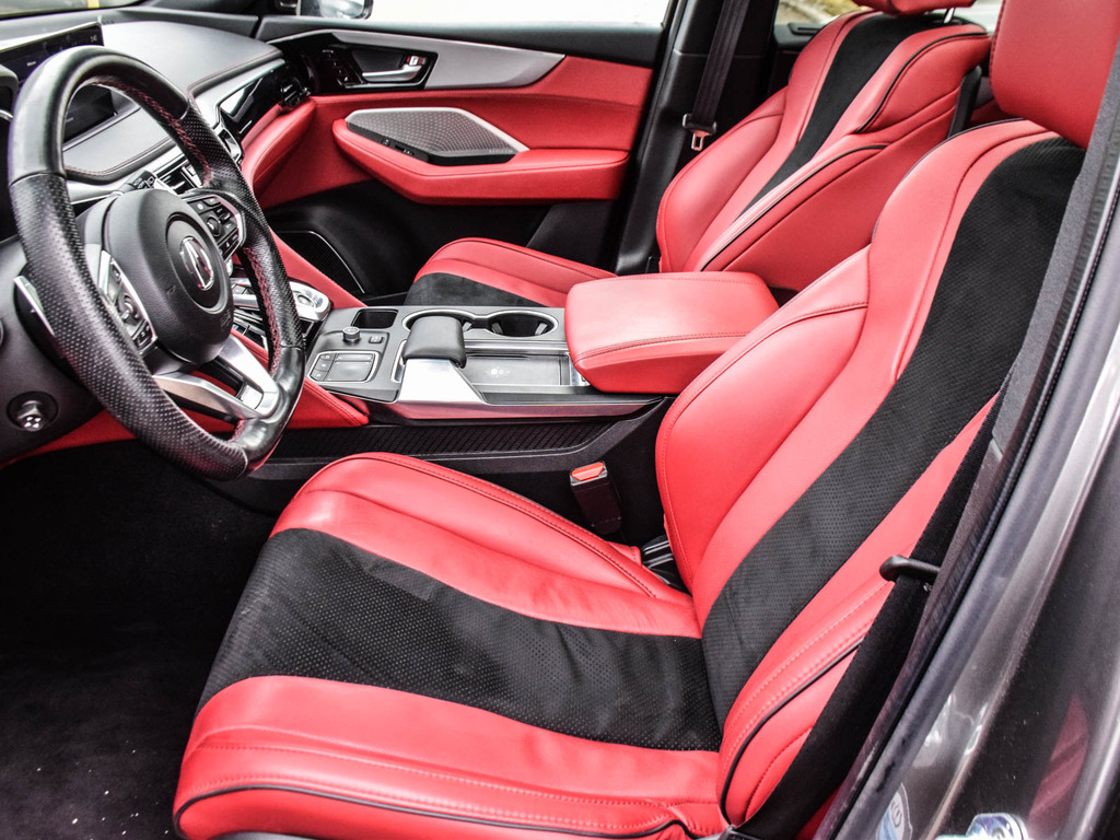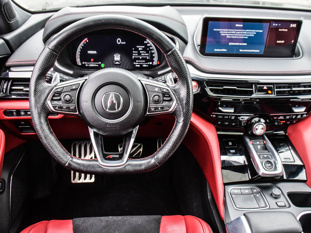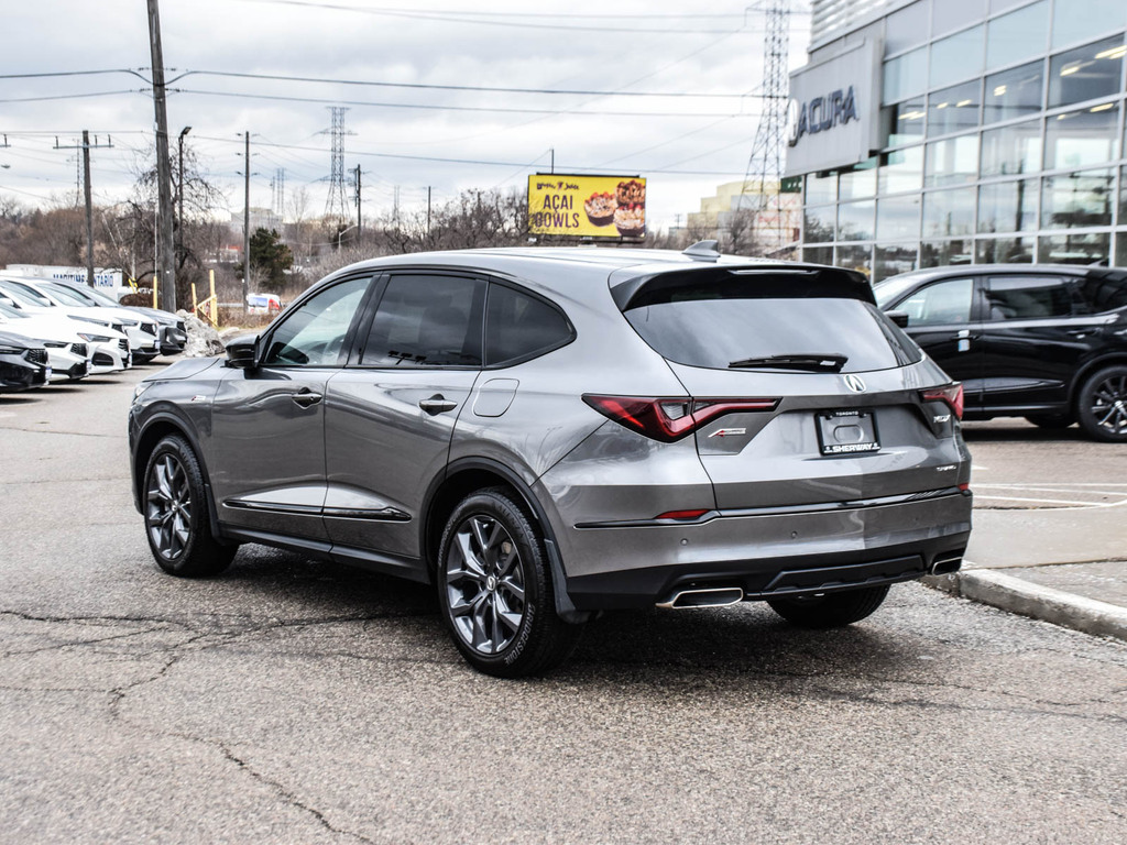 2024 Acura MDX A-spec. Acura Certified vehicle. 7 year 160,000 km warranty. The 2024 Acura MDX A-Spec is a luxury midsize SUV featuring a 290-horsepower 3.5L V6 engine, a 10-speed automatic transmission, and Super Handling All-Wheel Drive (SH-AWD) The A-Spec package enhances the MDX's appeal with unique styling and comfort features beyond the Tech trim: Exterior Styling: Features a sport appearance package with gloss black accents and 20-inch Shark Gray alloy wheels. It also adds LED fog lights. Interior Styling: Includes Sport A-Spec® seats with perforated Milano Premium Leather and Ultrasuede® trim, contrast stitching and piping, and an ebony headliner. Comfort & Convenience: Offers heated and ventilated front seats, a leather-wrapped flat-bottom sport steering wheel, and metal sport pedals. Audio System: Comes with an upgraded ELS Studio 3D® 16-speaker premium audio system for an immersive sound experience. AcuraWatch: A comprehensive suite of standard safety and driver-assistance technologies including Collision Mitigation Braking System, Adaptive Cruise Control, Lane Keeping Assist, and Blind Spot Information system.