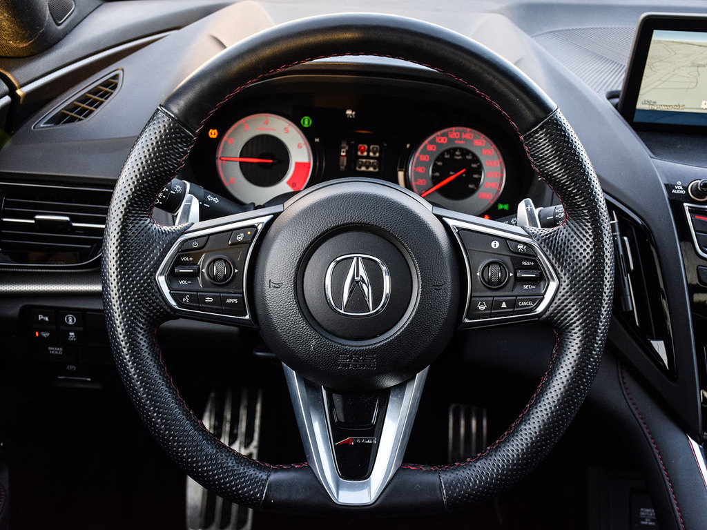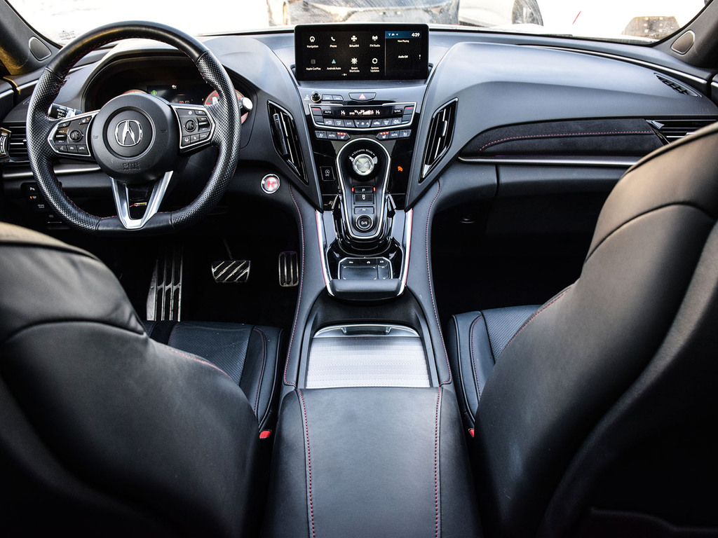 2023 Acura RDX A-spec. Acura Certified vehicle. 7 year 160,000 km warranty. The 2023 Acura RDX A-Spec is a luxury compact SUV that blends sporty styling and performance with a comprehensive suite of tech and safety features. It is powered by a turbocharged 2.0L 4-cylinder engine and offers available Super Handling All-Wheel Drive (SH-AWD®). Performance and Engineering The RDX A-Spec offers an engaging driving experience with standard all-wheel drive in the Canadian market and an available option in the U.S.. Engine: A 2.0-litre VTEC® turbocharged 4-cylinder engine producing 272 horsepower and 280 lb-ft of torque. Transmission: A smooth-shifting 10-speed automatic transmission with Sequential SportShift paddle shifters. Drivetrain: Acura's signature SH-AWD® system is available, which enhances cornering and traction by distributing variable power to individual wheels