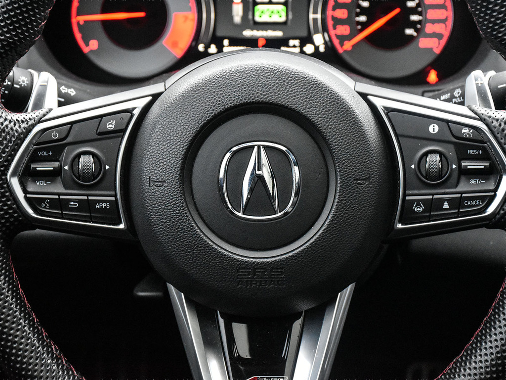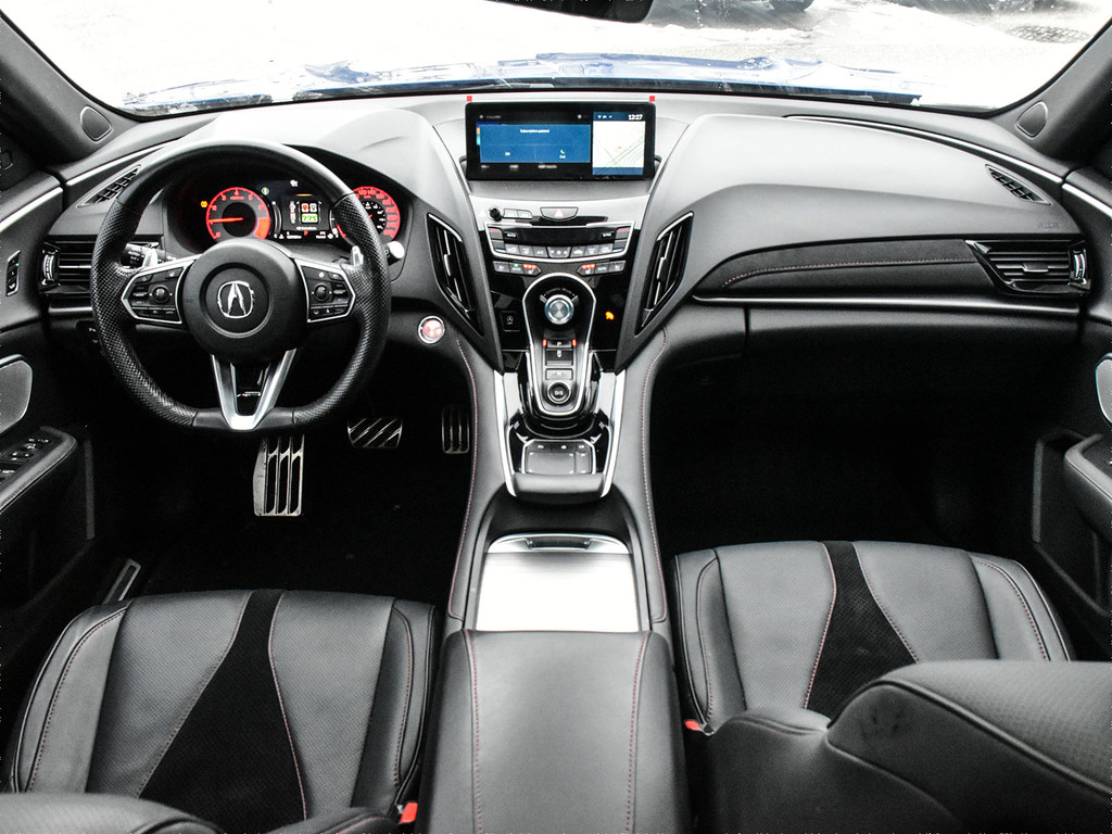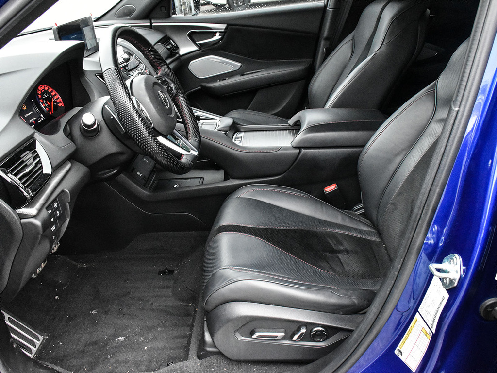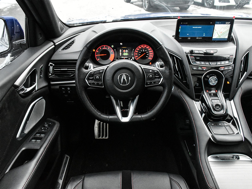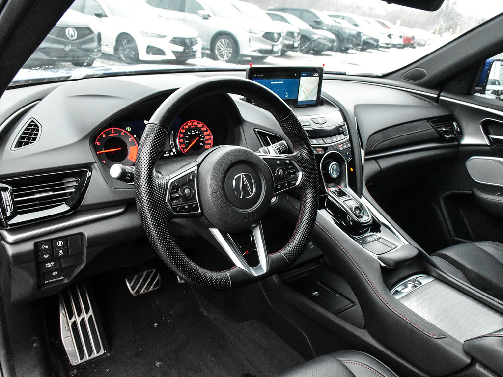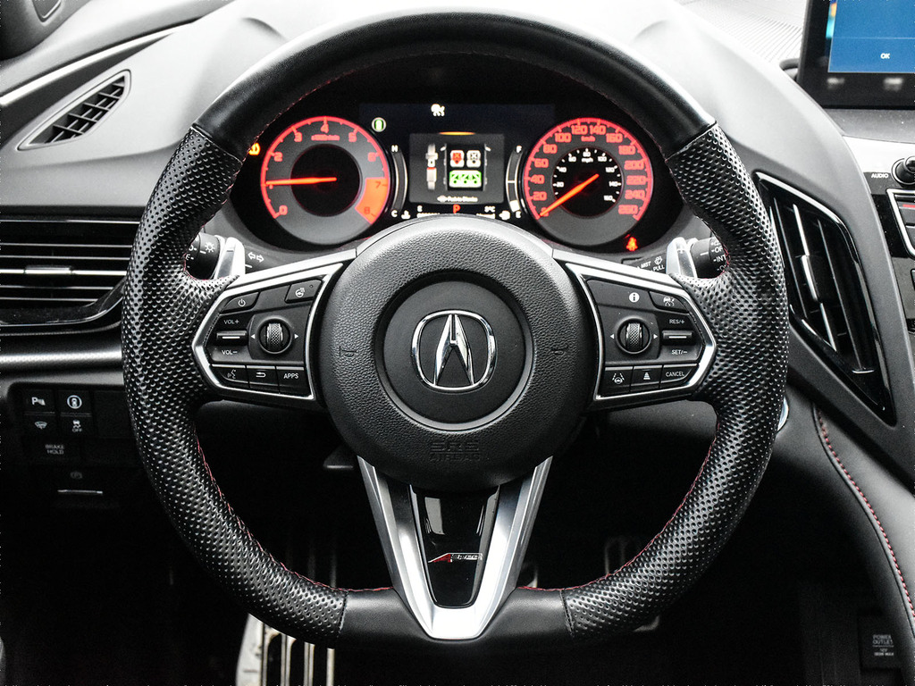 2024 Acura RDX A-spec. Acura Certified vehicle. 7 year 160,000 km warranty. The 2024 Acura RDX A-Spec is a compact luxury SUV that offers sporty styling and a performance-oriented driving experience with a turbocharged 2.0-liter engine and standard Super Handling All-Wheel Drive (SH-AWD®). It is positioned as a mid-tier trim level, offering an abundance of standard features and a focus on value compared to its European rivals. A-Spec® Exclusive Features The A-Spec® package adds distinctive design elements and upgraded interior amenities that enhance the RDX's sporty character. Exterior Styling: Aggressive exterior with unique A-Spec® badging, gloss black accents, and round dual exhaust outlets. Interior Accents: Sport seats with perforated Milano premium leather and Ultrasuede®-trimmed seating surfaces with contrast stitching and piping, a flat-bottom steering wheel, and metal sport pedals. Audio System: Upgraded ELS Studio 3D® Premium Audio System with 16 speakers, which includes four speakers in the headliner for an immersive experience. Comfort: Ventilated (cooled) front seats in addition to the standard heated front seats.