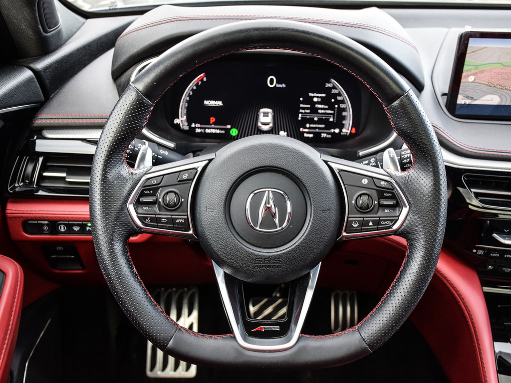 2023 Acura MDX A-spec. The 2023 Acura MDX A-Spec is a sporty trim level with the standard 290-hp 3.5L V6 engine and Super Handling All-Wheel Drive (SH-AWD®). It features unique A-Spec styling, including a gloss-black exterior, special 20-inch wheels, and an interior with Ultrasuede seats, a flat-bottom steering wheel, and a 12.3-inch display with premium audio. Key features also include wireless Apple CarPlay/Android Auto, heated and ventilated front seats, and a host of advanced driver-assistance technologies. Acura Certified vehicle. 7 year 160,000 km warranty. All services are up to date. buy with confidence. Test Drive Today